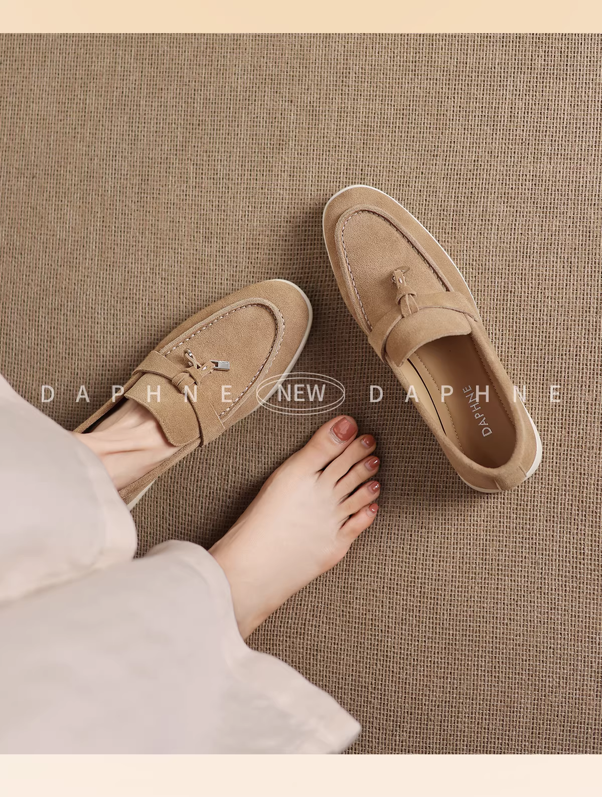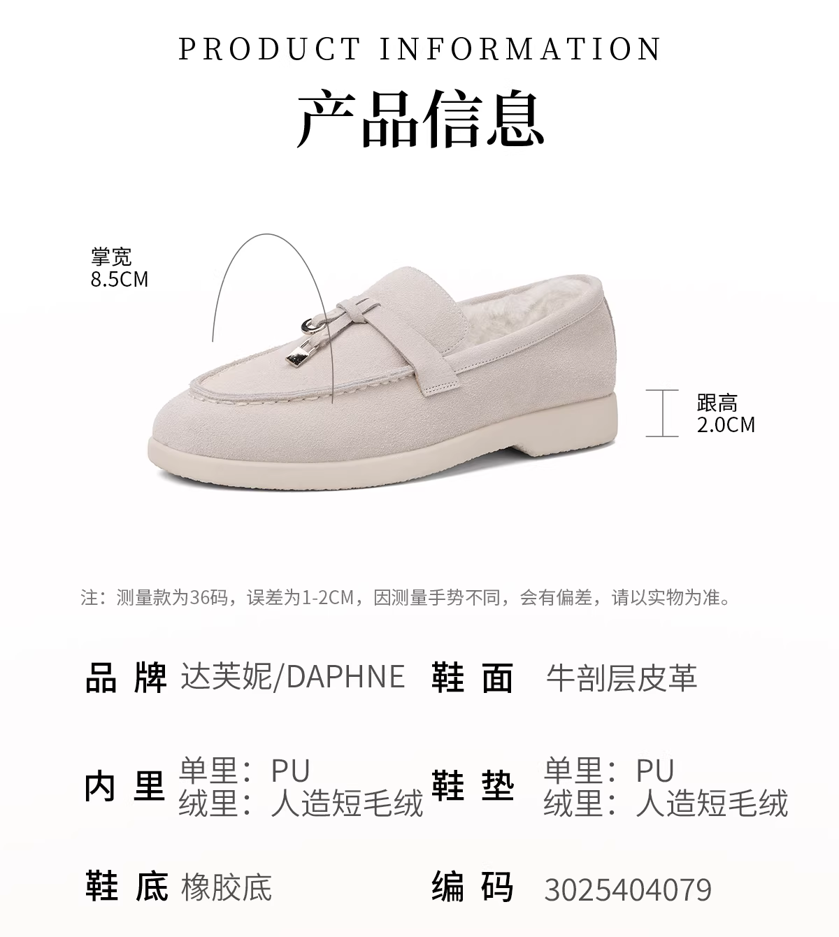 Giày lười lót lông Daphne dành cho nữ, mẫu mới mùa đông 2025, giày bệt dễ mang, giày cotton ấm áp, giày da nữ