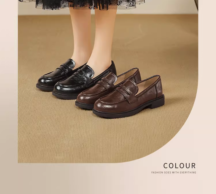 - Giày lười nâu Dadong dành cho nữ Thu Đông 2025, giày nữ mới, giày bệt đi làm, phong cách học sinh, retro, đế mềm, giày da nhỏ