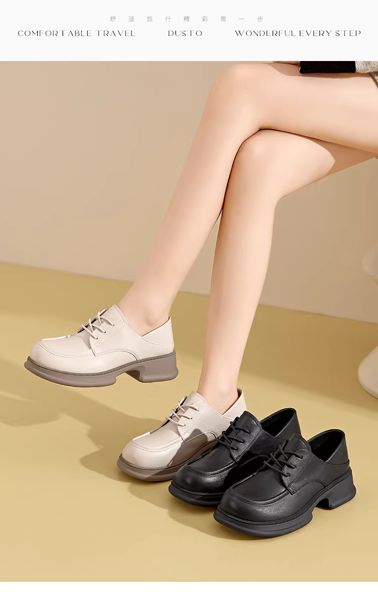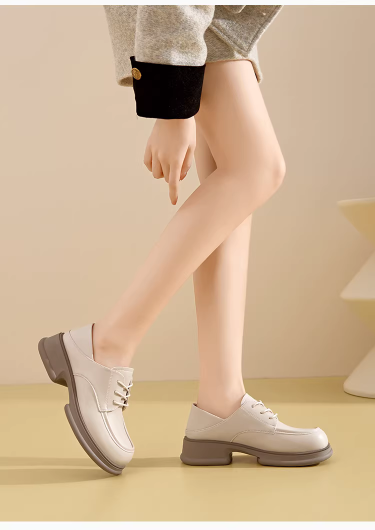 - Giày lười nữ Dadong đế dày kiểu Anh, buộc dây, đi làm, chất liệu da, mùa thu đông 2025