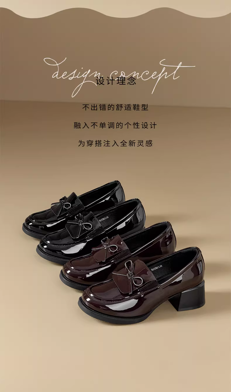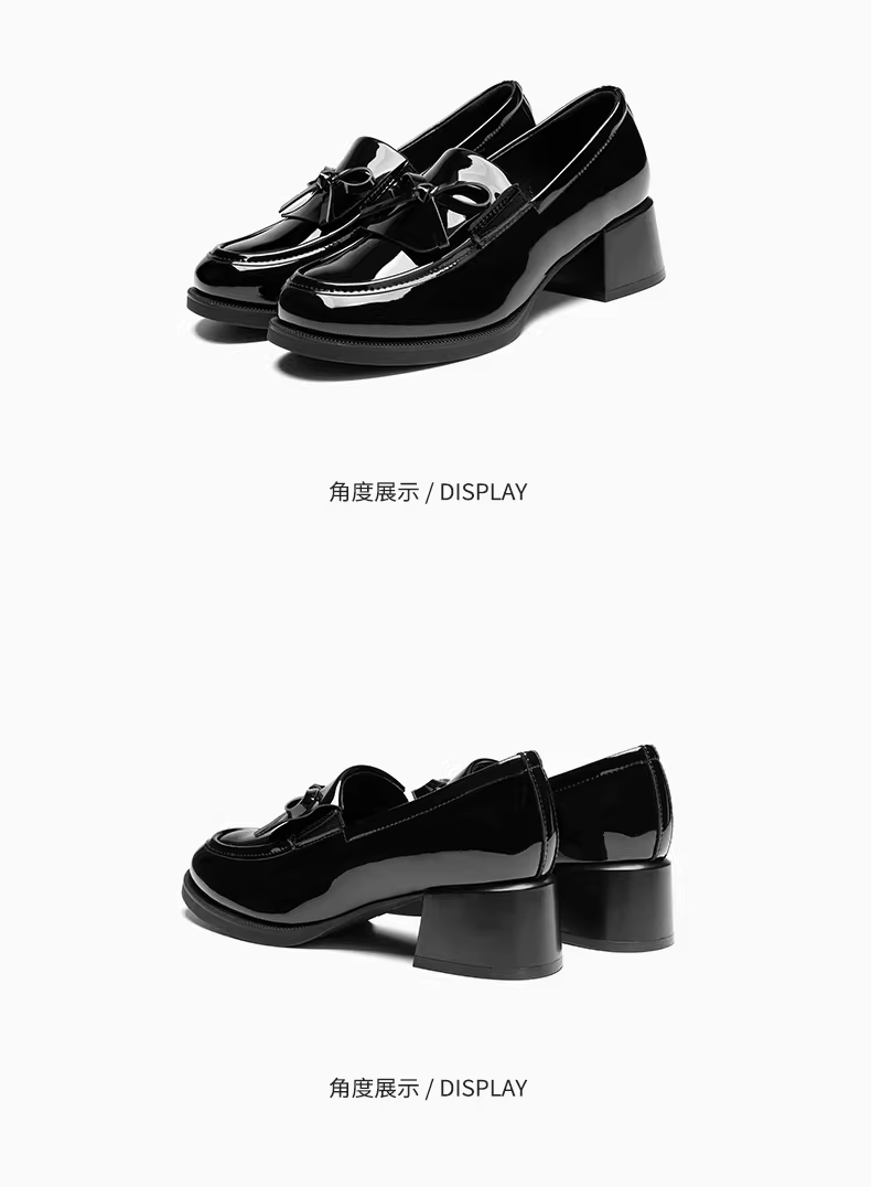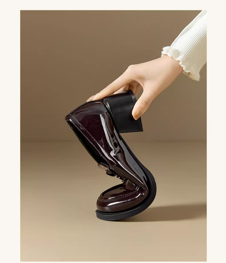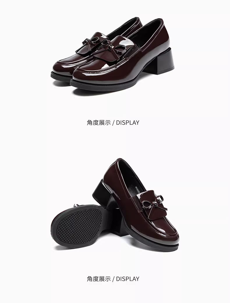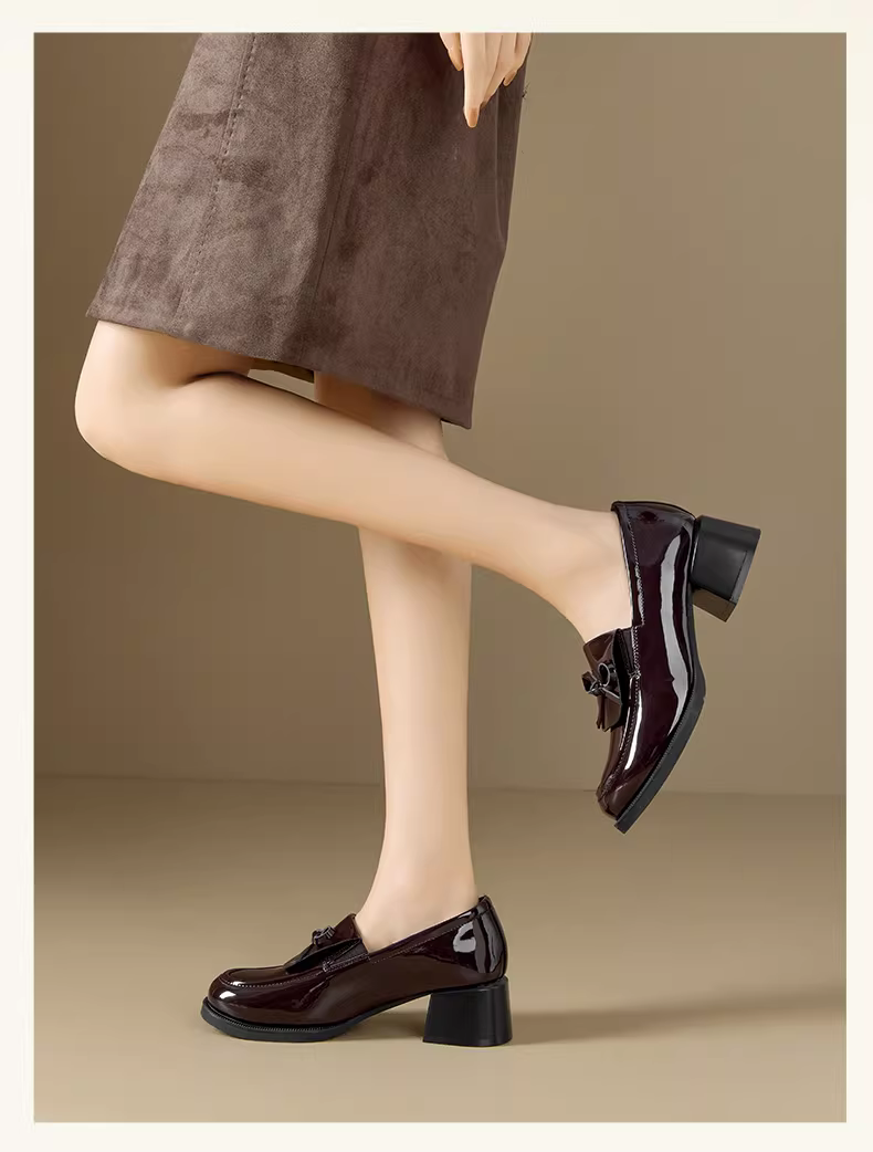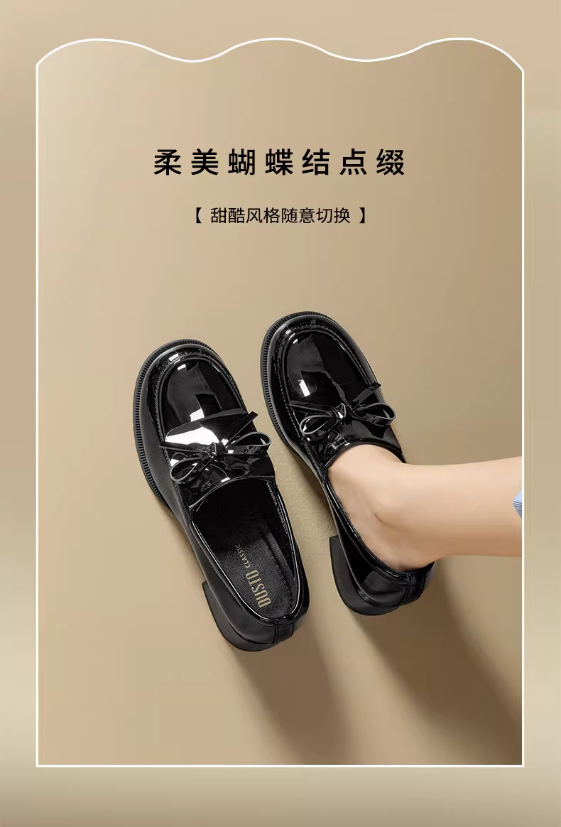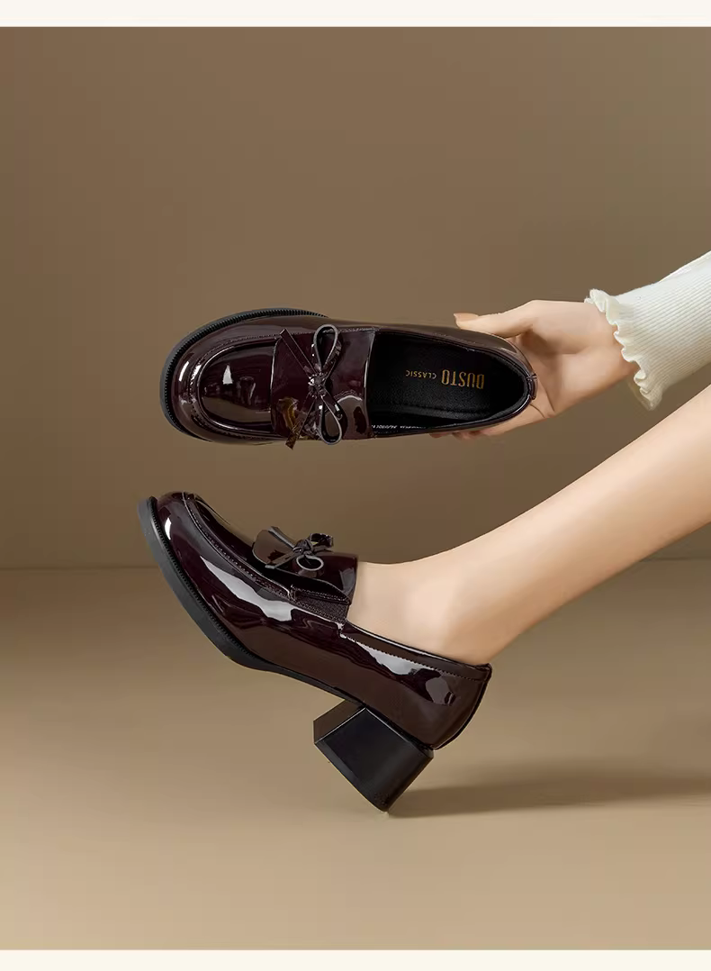 - Giày lười nữ Dadong kiểu mới mùa thu 2025, kiểu nơ, chất liệu da bóng, giày đơn giản phong cách học sinh, gót dày, giày da nhỏ nhắn