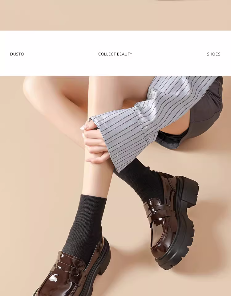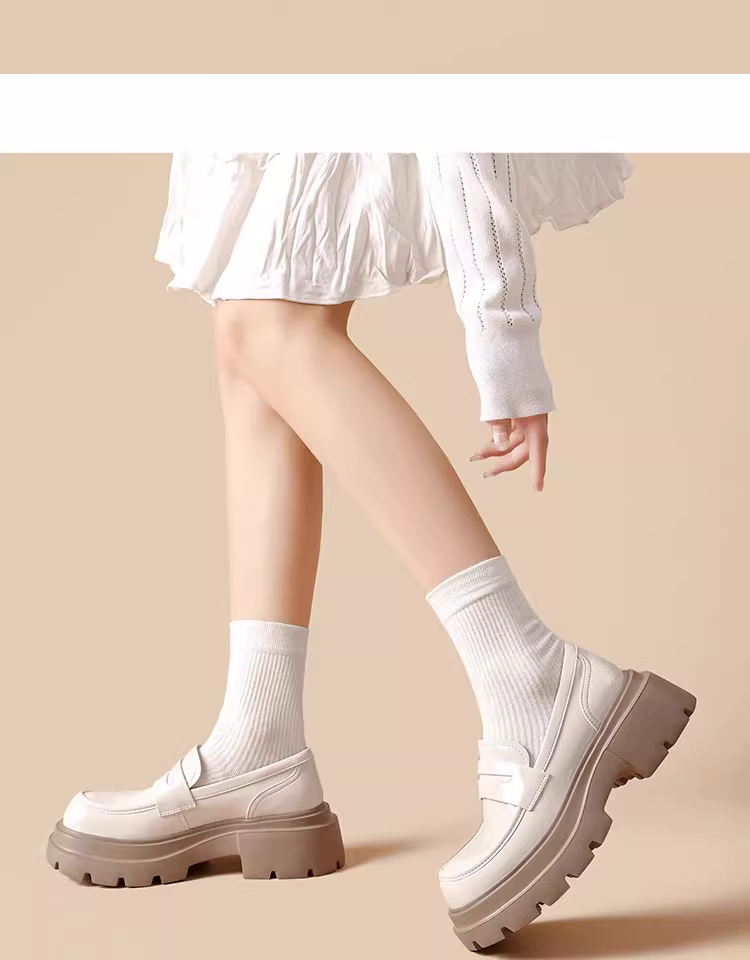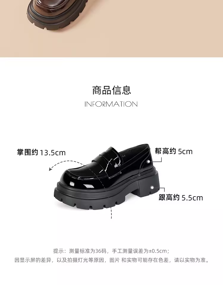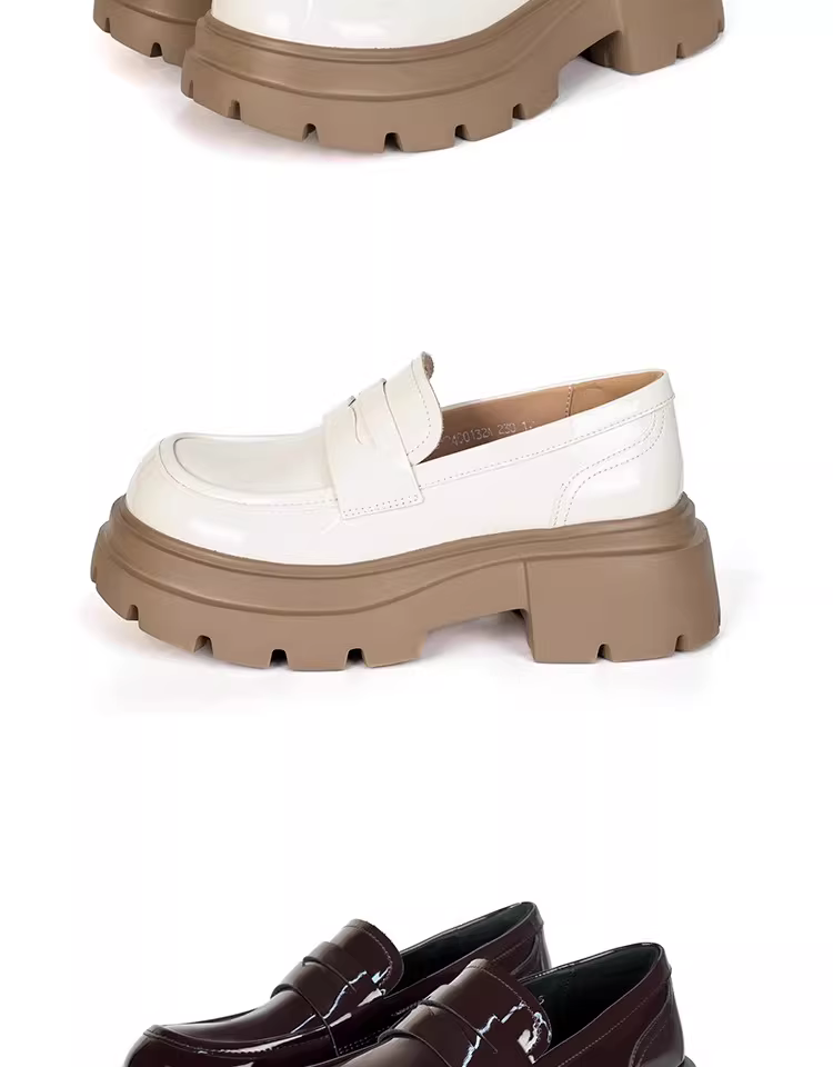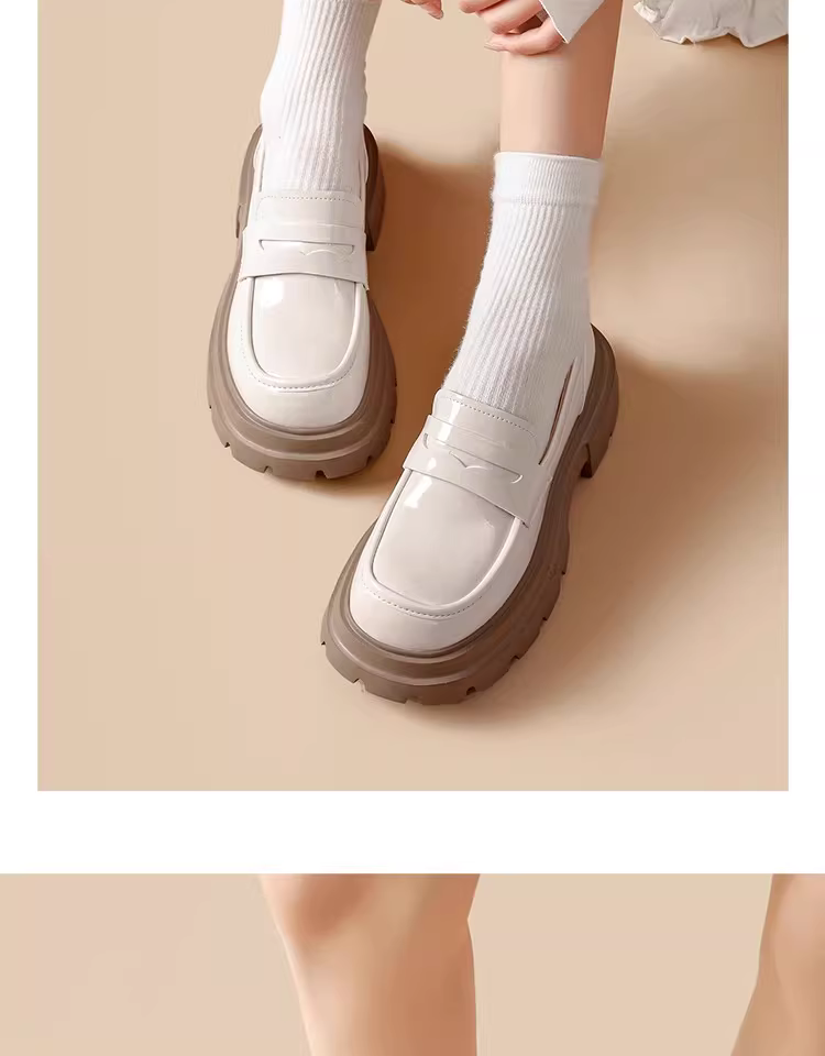 - Giày lười nữ đế dày 2025 mẫu mới thu đông màu đen da bóng mũi tròn kiểu Anh tăng chiều cao giày da nhỏ gọn