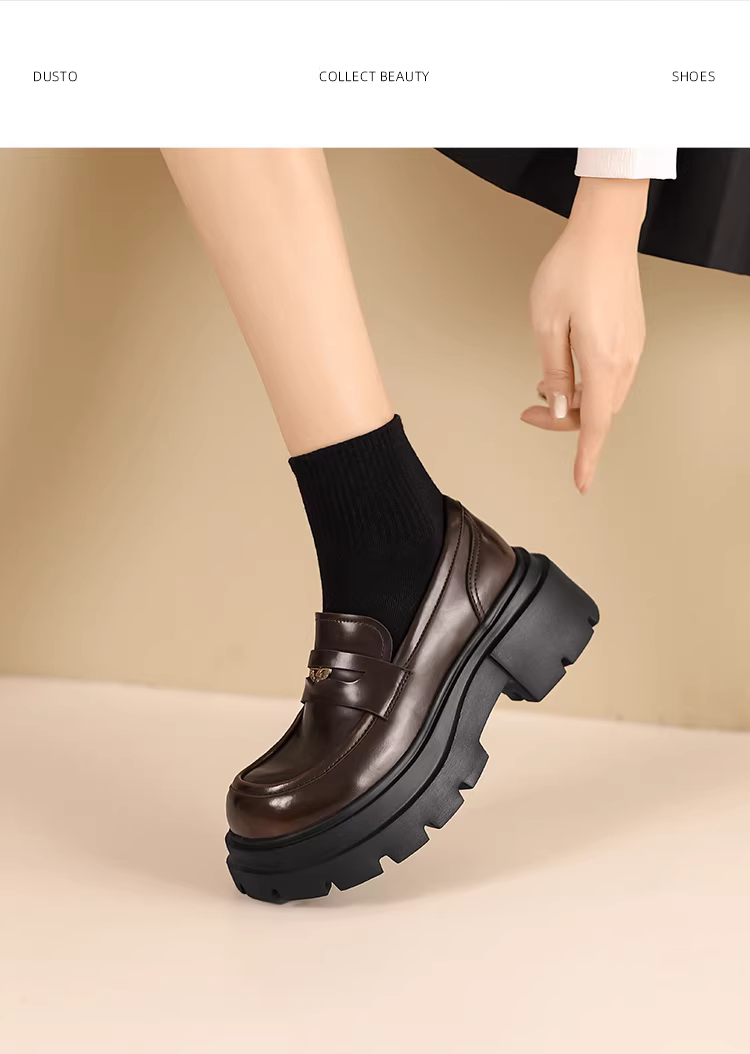 - Giày lười nữ đế dày, kiểu mới thu đông 2025, giày da nhỏ kiểu Anh, giày đơn tăng chiều cao cho nữ nhỏ nhắn, giày đế xuồng.