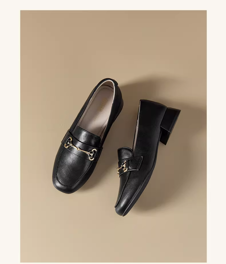 Giày lười nữ đế xuồng đi làm mùa thu đông 2025 kiểu mới, giày lười đen, giày kiểu beanie