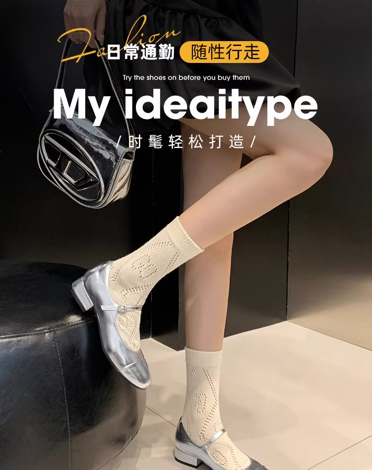 - Giày Mary Jane bạc Dadong dành cho nữ 2025, kiểu mới mùa thu, gót trung bình, gót thô, quai đơn, giày nữ miệng nông, kiểu bệt