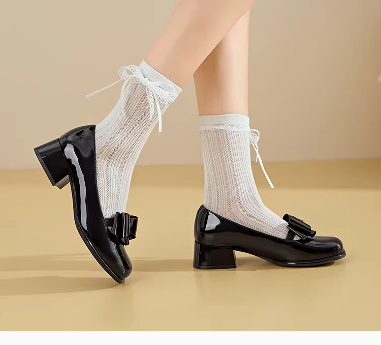 - Giày Mary Jane cao gót Dadong dành cho nữ 2025 xuân thu mới màu đen nơ nhỏ giày da kiểu Pháp gót thô giày đơn