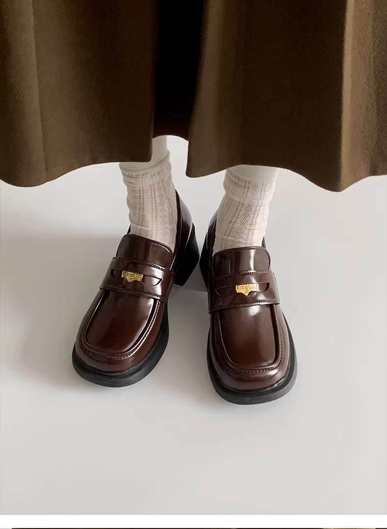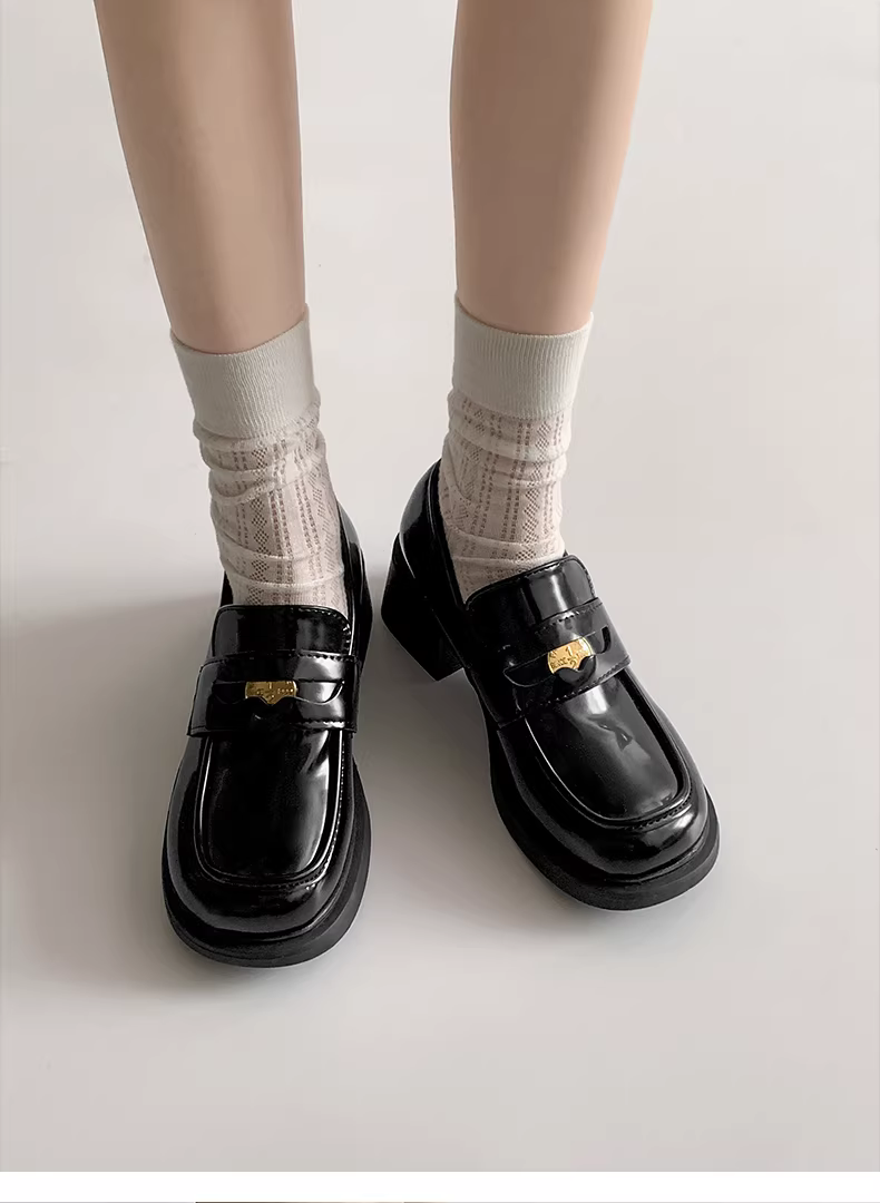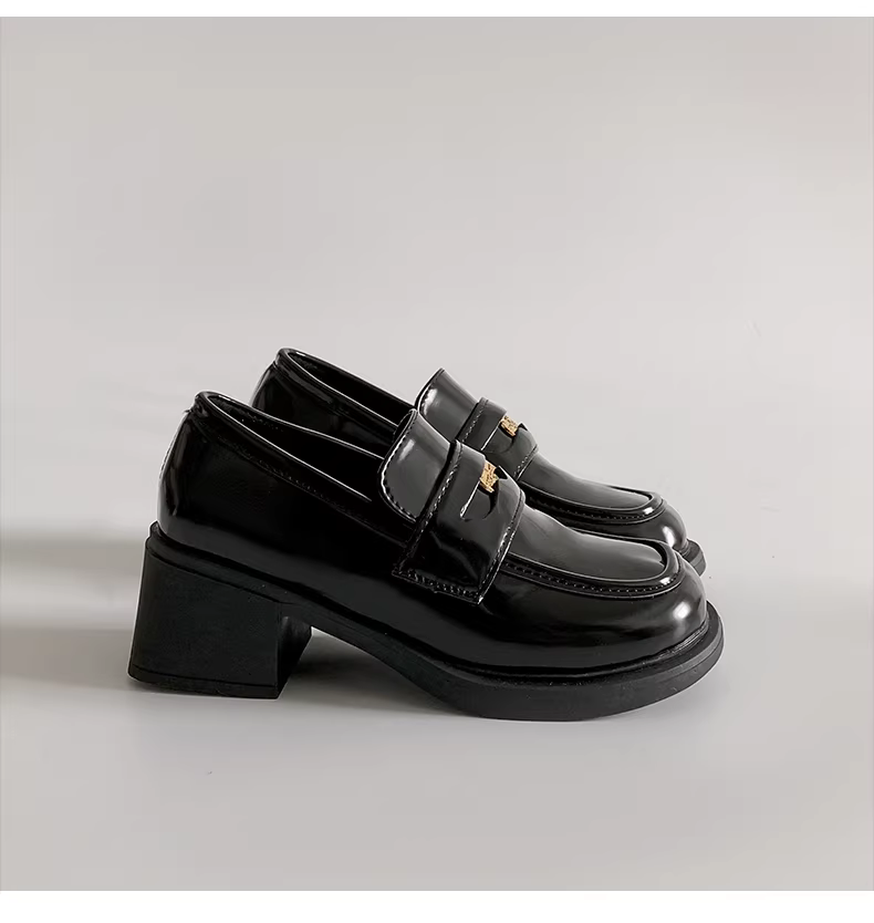 - Giày Mary Jane da kiểu Pháp đen đế xuồng dành cho nữ, mẫu mới thu 2025 mũi tròn cổ điển gót cao chunky