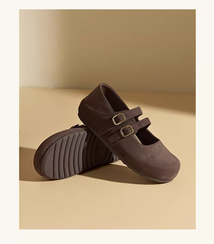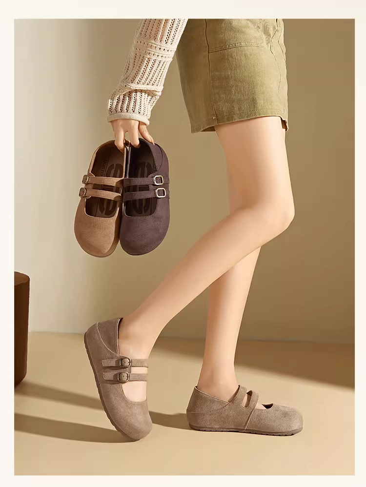 Giày Mary Jane Dadong dành cho nữ 2025, mẫu mới mùa thu, kiểu Birkenstock, đế bằng, ôm chân, phối chân váy, giày bệt nữ.