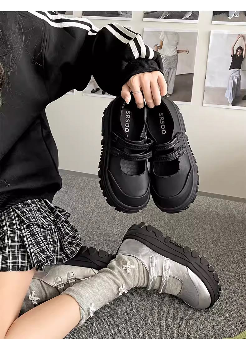 - Giày Mary Jane đế dày kiểu Pháp cổ điển màu bạc dành cho nữ, mẫu mới mùa thu 2025, đa năng, tăng chiều cao.