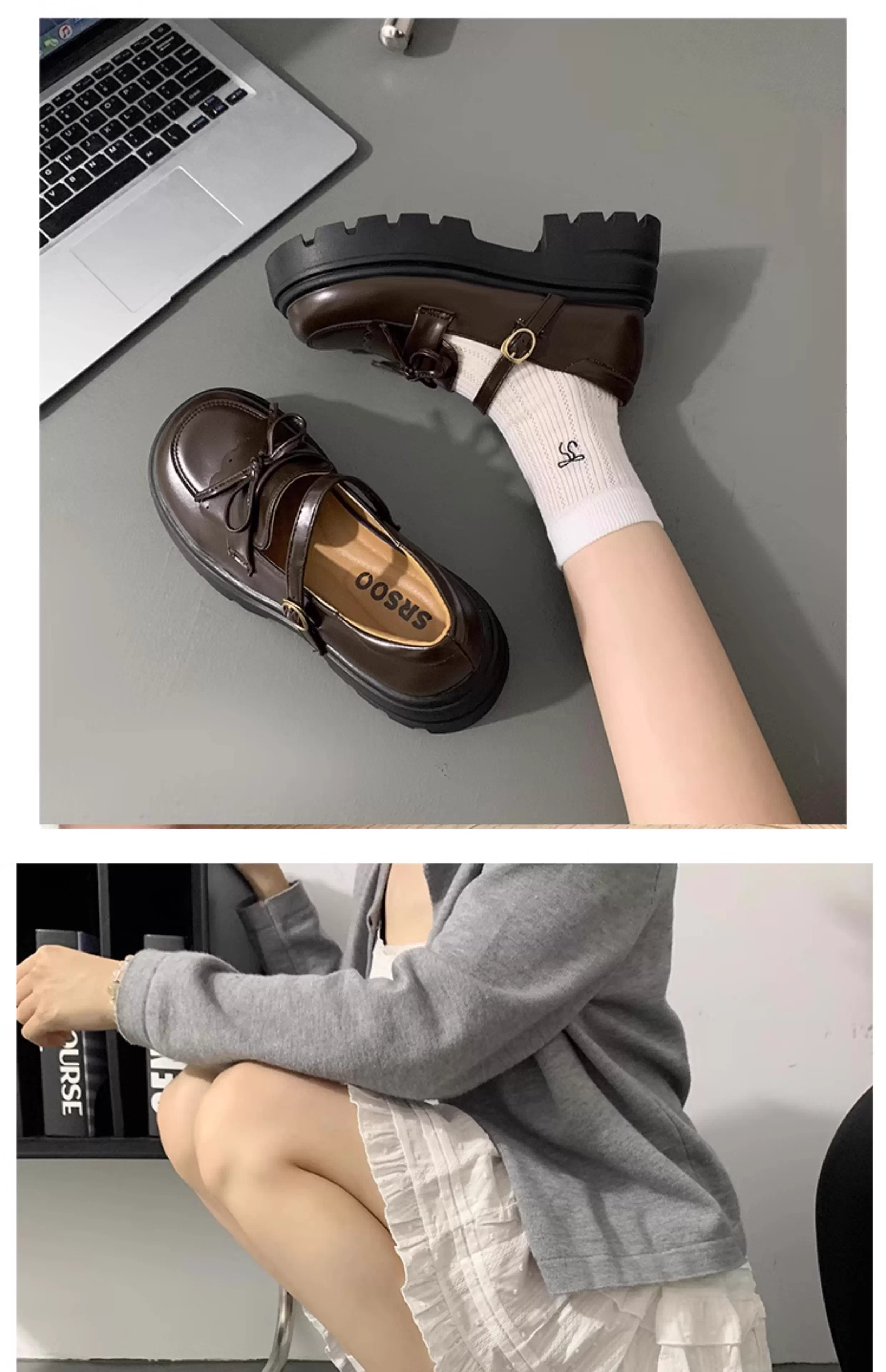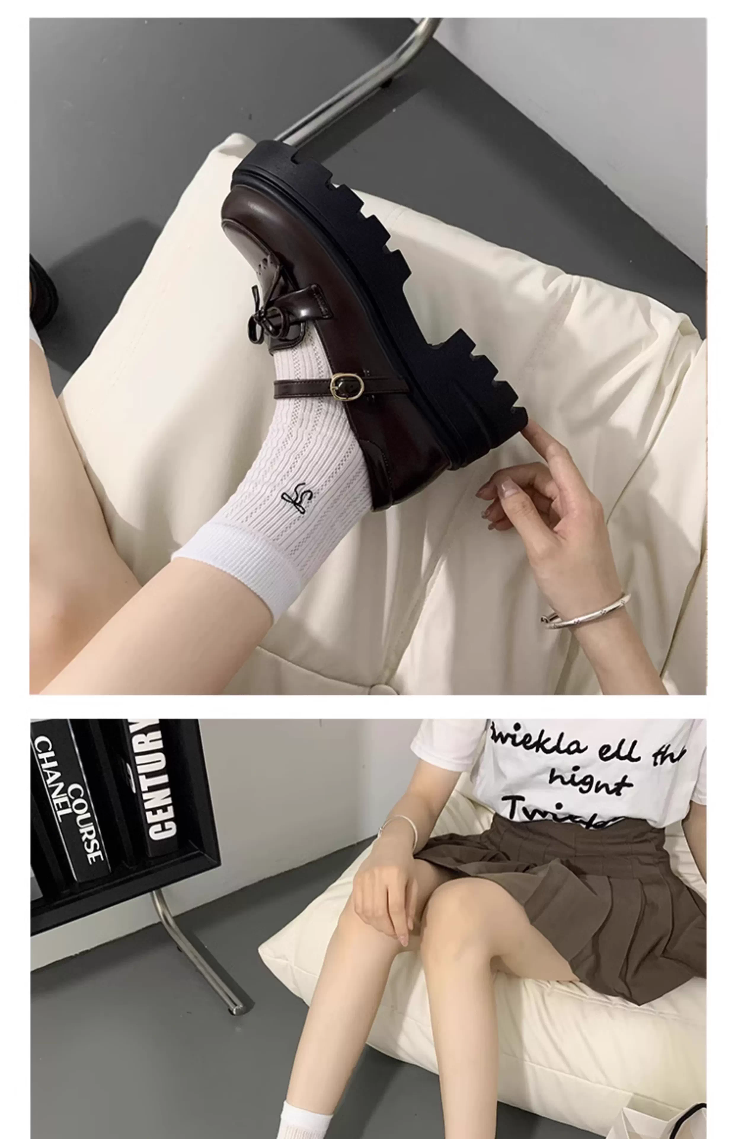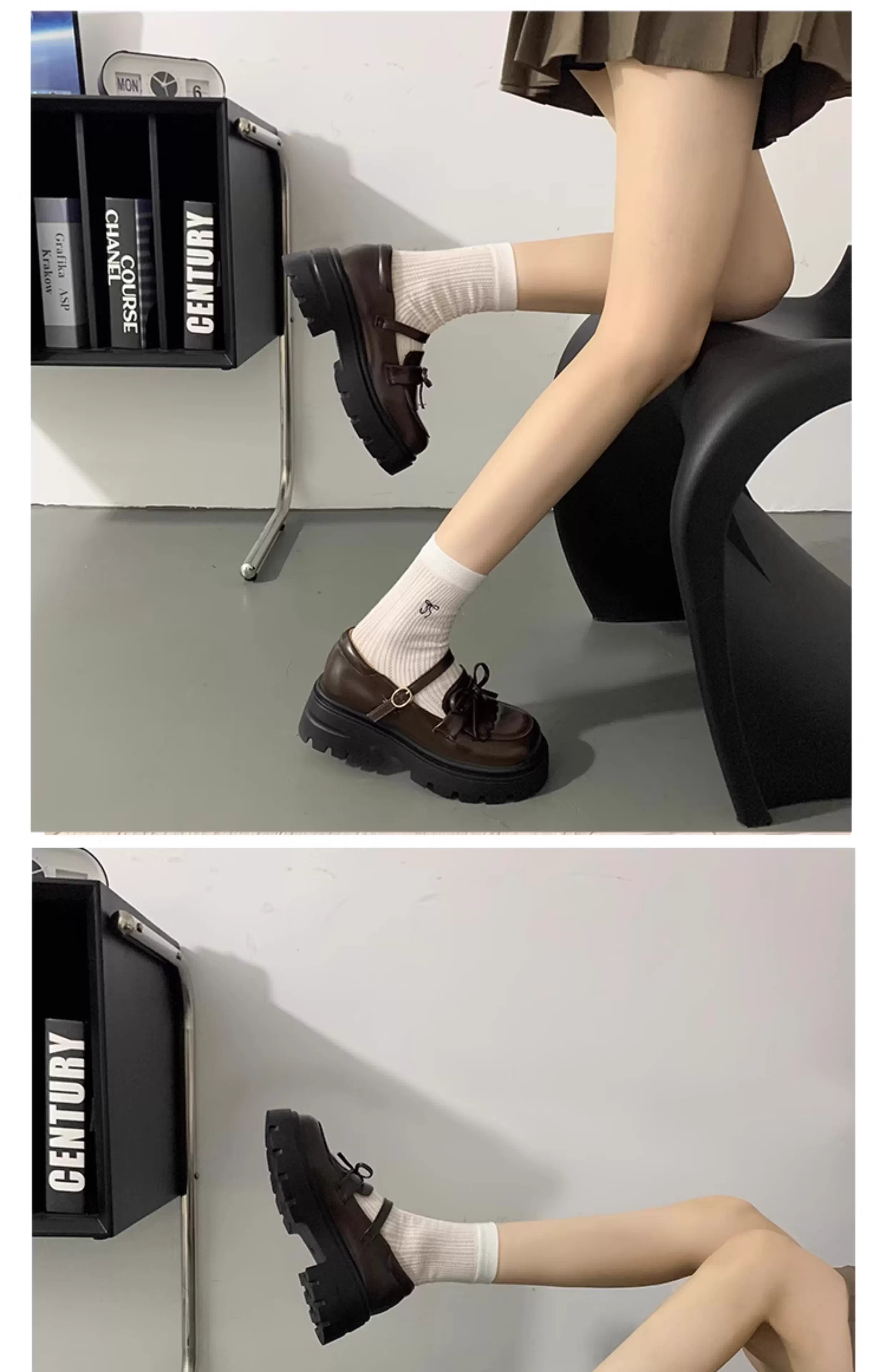 - Giày Mary Jane đế dày kiểu Pháp màu nâu dành cho nữ, mẫu thu đông 2025 mới, giày cao gót đế thô tăng chiều cao.
