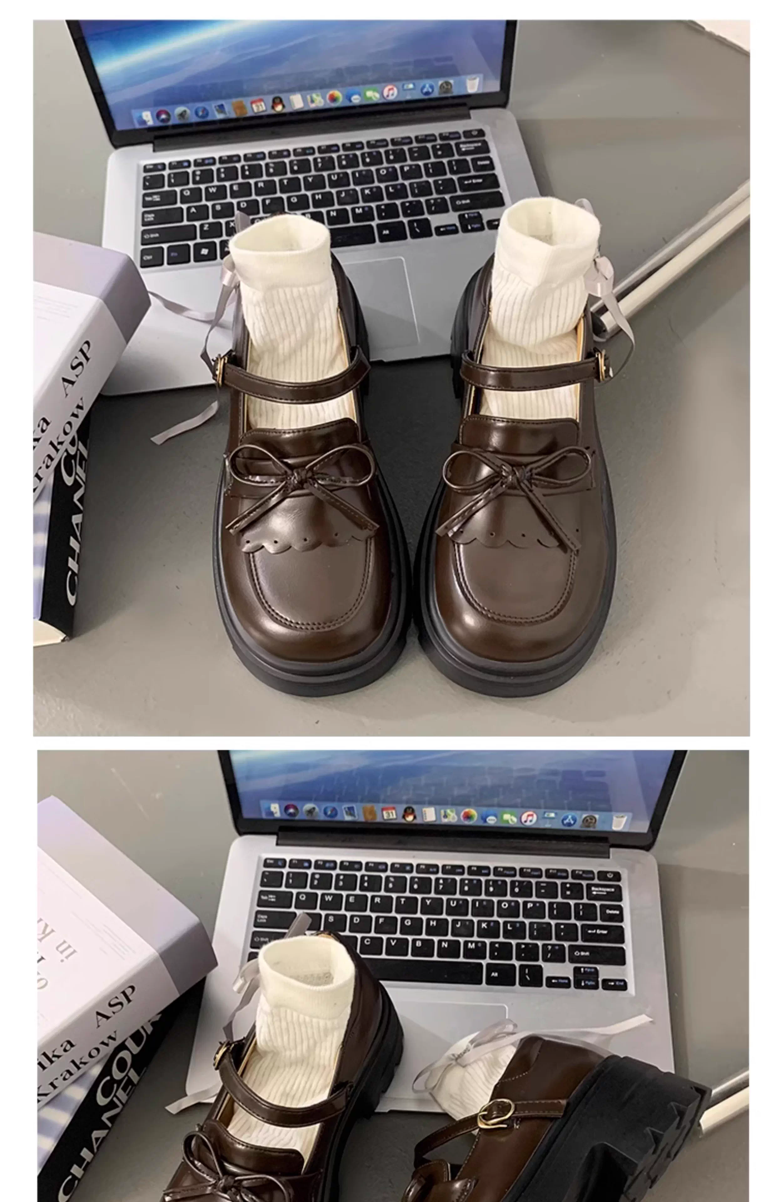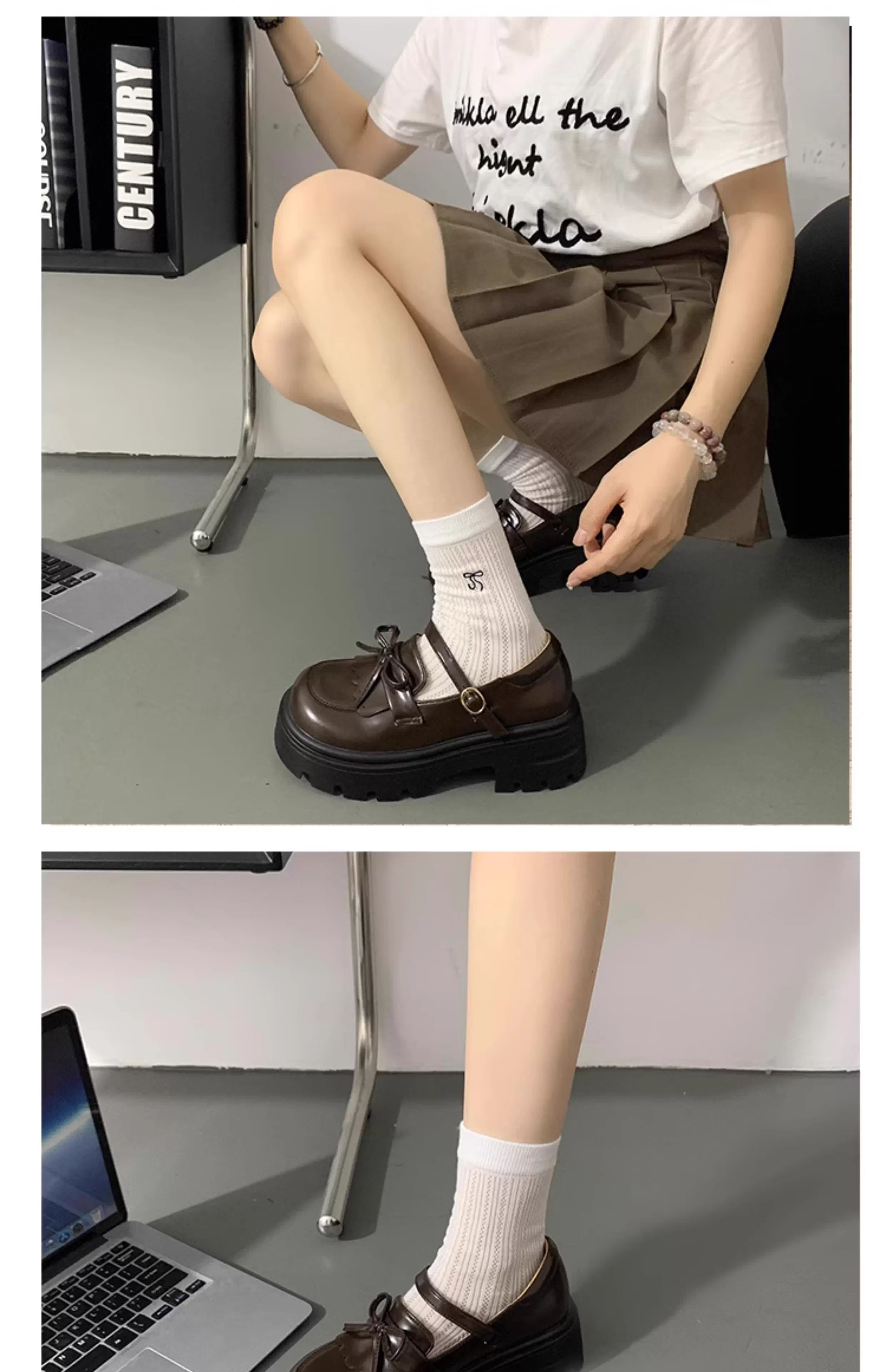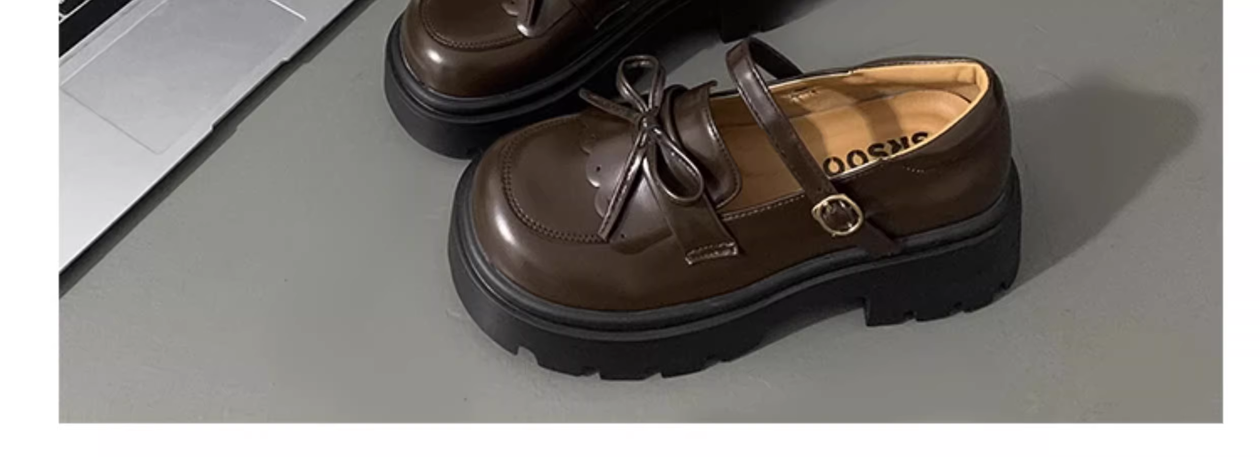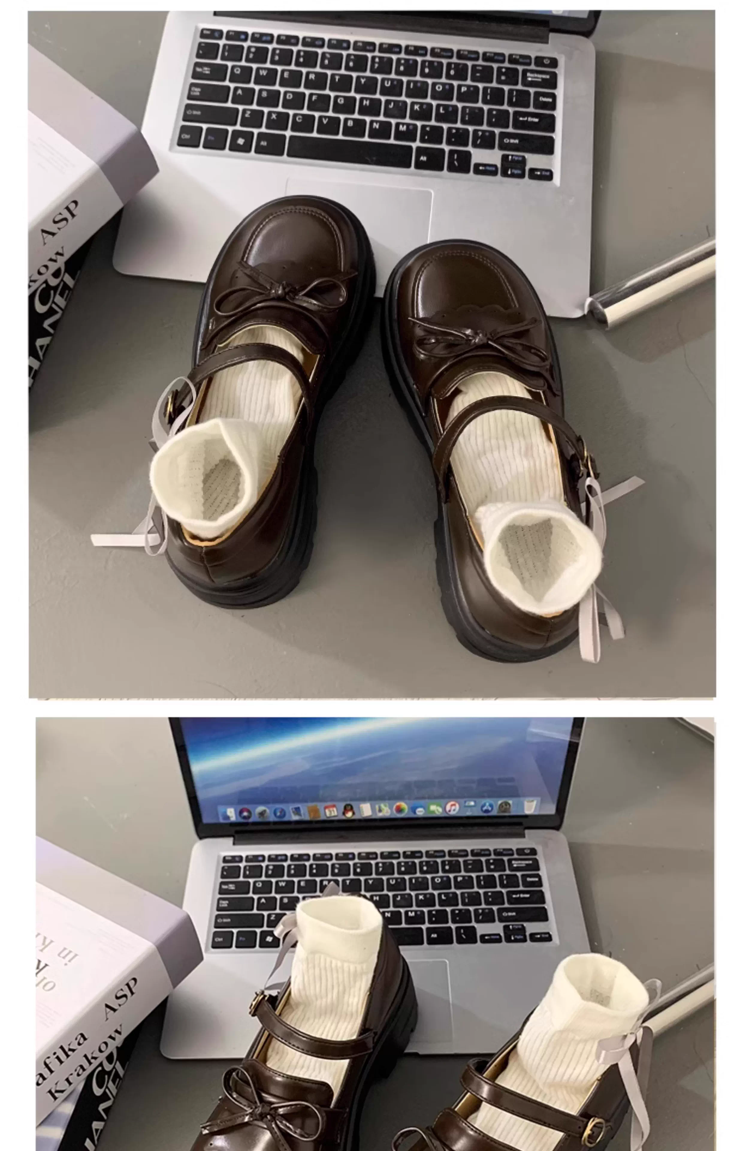 - Giày Mary Jane đế dày kiểu Pháp màu nâu dành cho nữ, mẫu thu đông 2025 mới, giày cao gót đế thô tăng chiều cao.