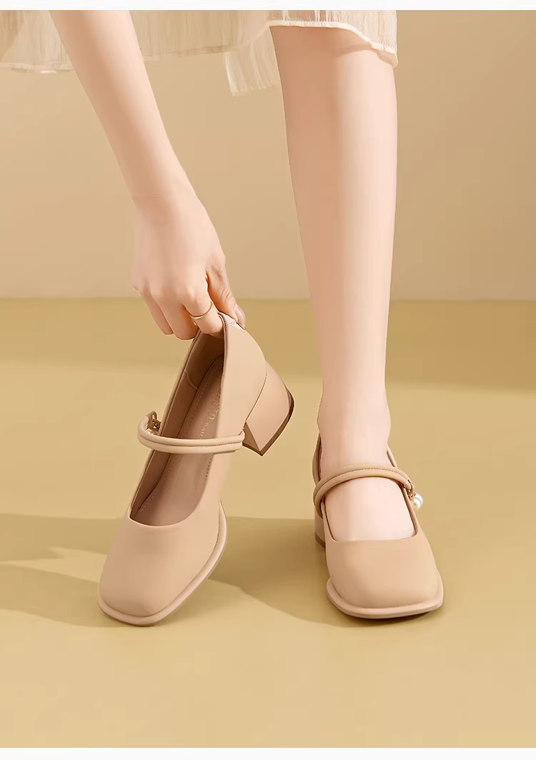 - Giày Mary Jane đế dày mũi vuông màu hồng Dadong dành cho nữ, mẫu mới thu 2025, giày dự tiệc phối chân váy, giày cao gót