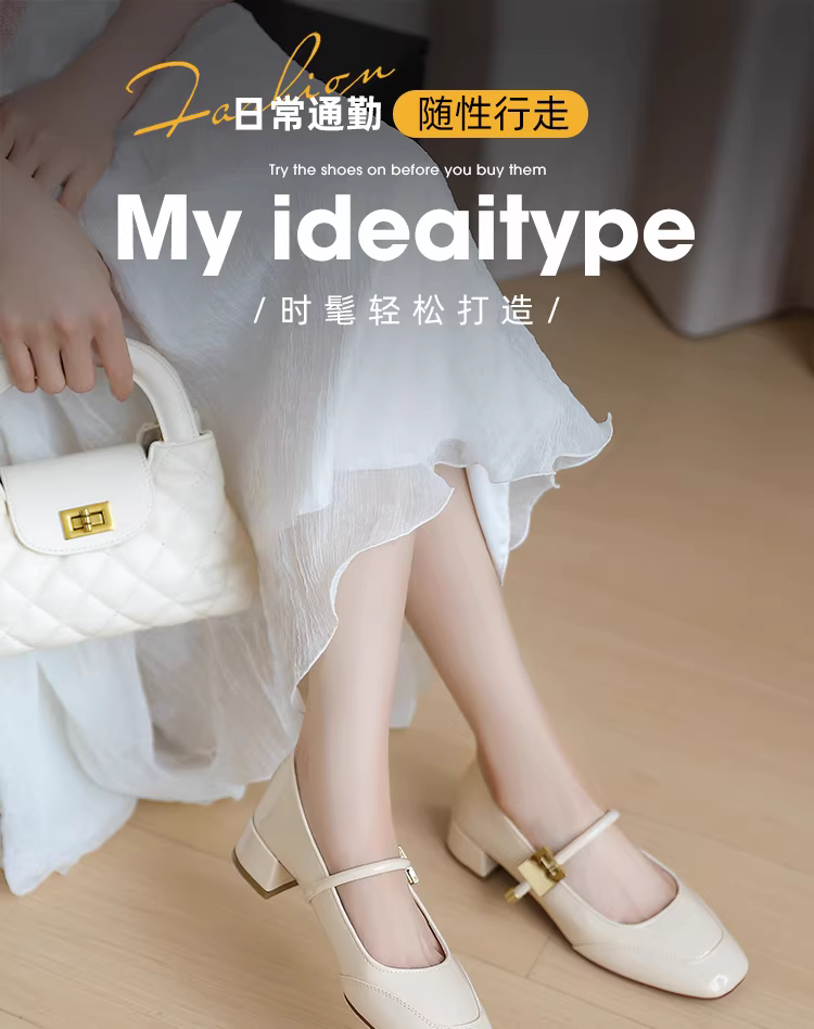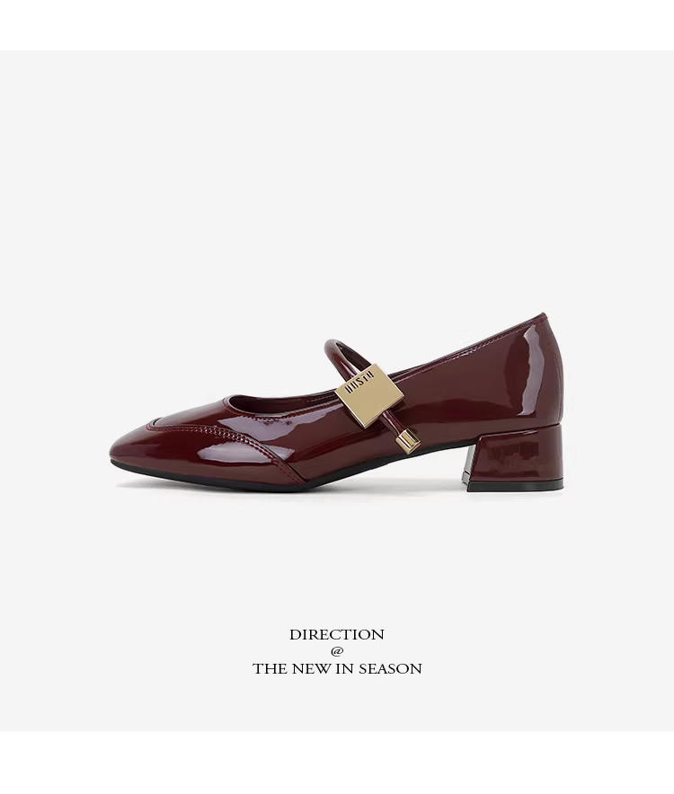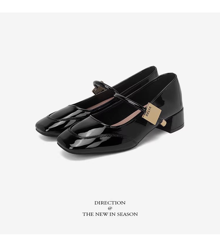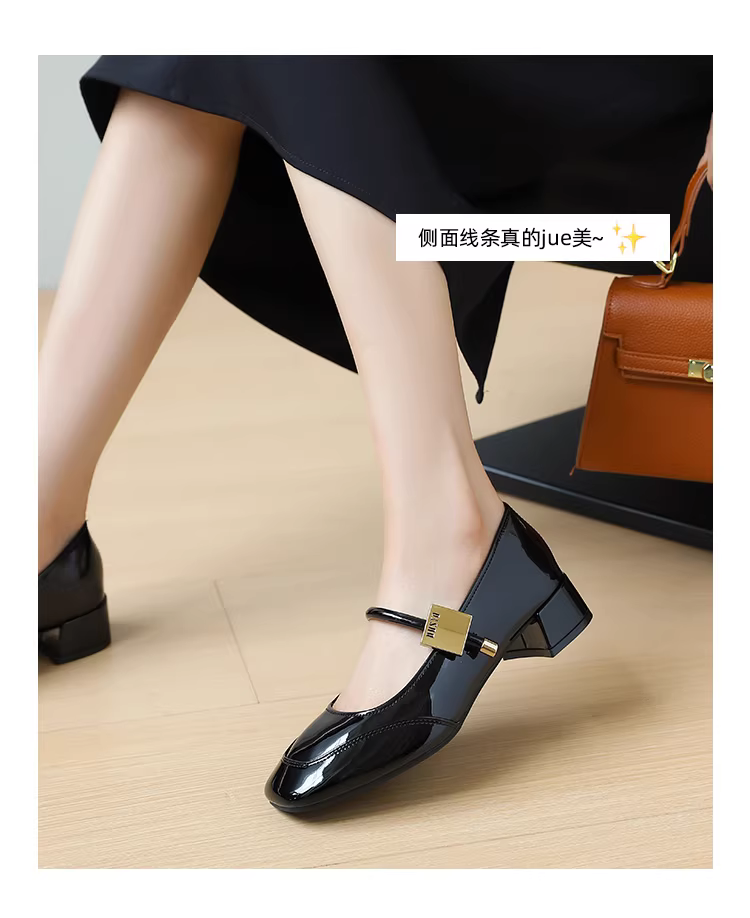 - Giày Mary Jane đế thô Dadong dành cho nữ, mẫu mới thu đông 2025, chất liệu da bóng, phối chân váy, giày cao gót trung bình.