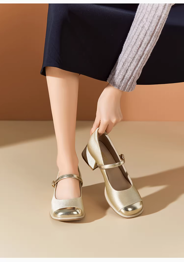 - Giày Mary Jane kiểu Pháp Dadong dành cho nữ 2025, mẫu mới thu đông, đa năng, giày nữ miệng nông, gót vuông, đế dày, giày đơn.