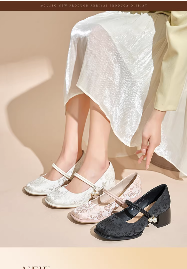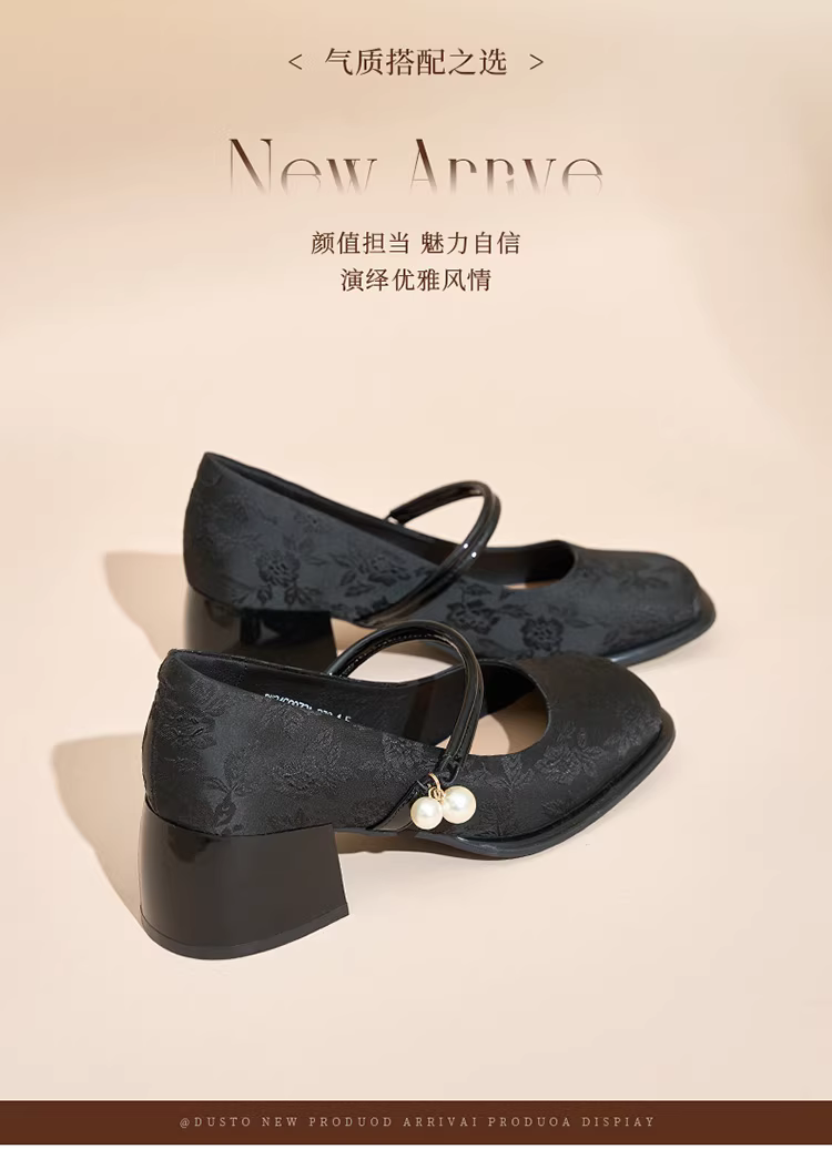 - Giày Mary Jane kiểu Pháp Dadong dành cho nữ, mẫu mới thu 2025, phối cùng chân váy, gót cao chunky, kiểu Chanel thanh lịch, giày đơn giản.