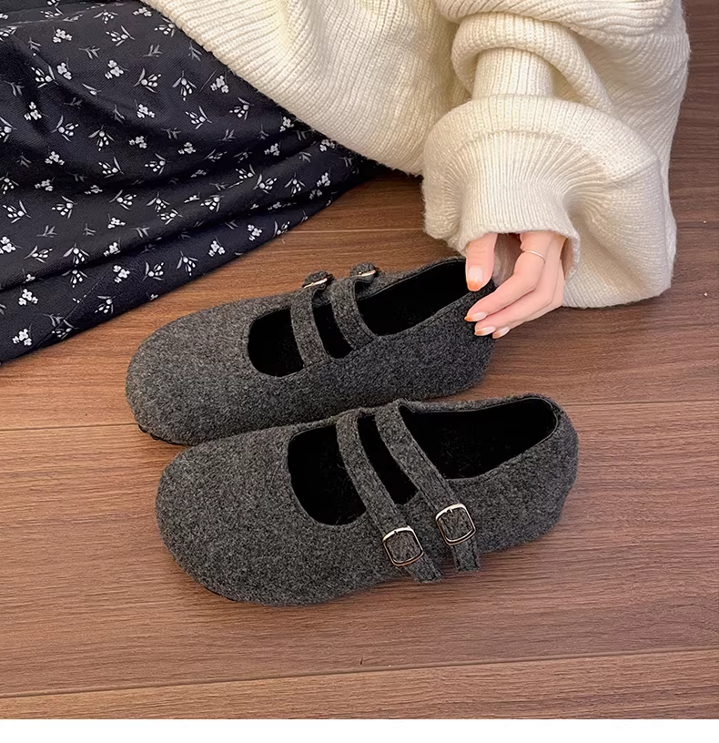 - Giày Mary Jane lót lông cừu dày đế cao tăng chiều cao, giày bông mềm đế mềm đa năng mùa đông 2025 dành cho nữ
