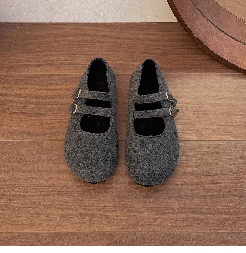 Giày Mary Jane lót lông cừu dày đế cao tăng chiều cao, giày bông mềm đế mềm đa năng mùa đông 2025 dành cho nữ