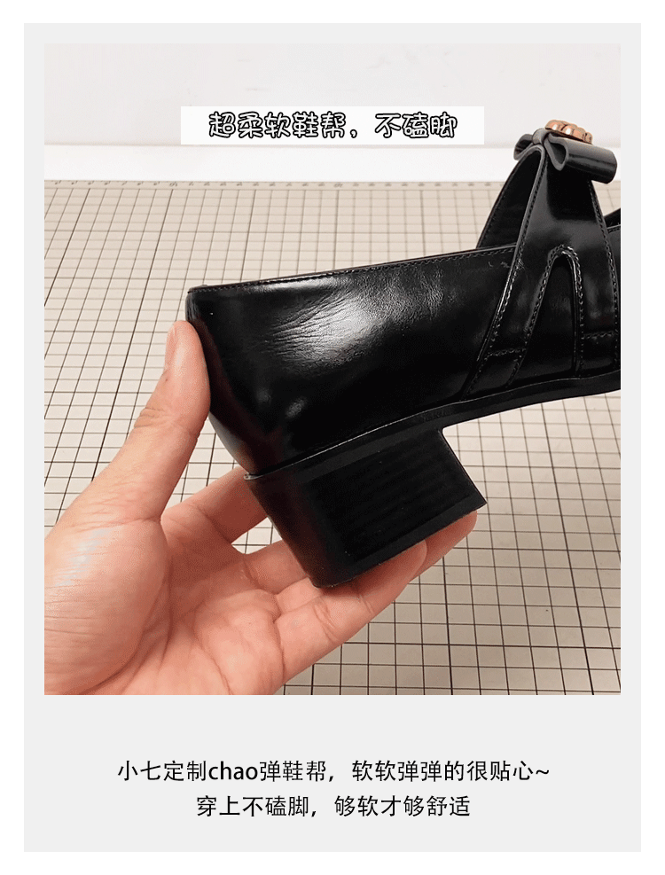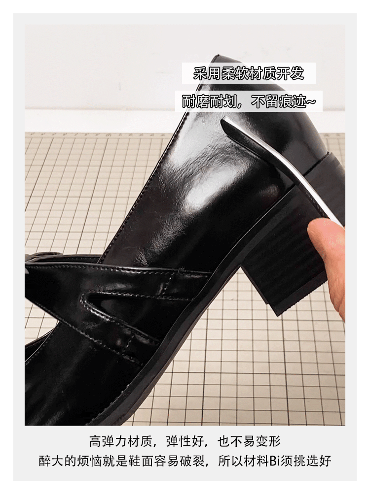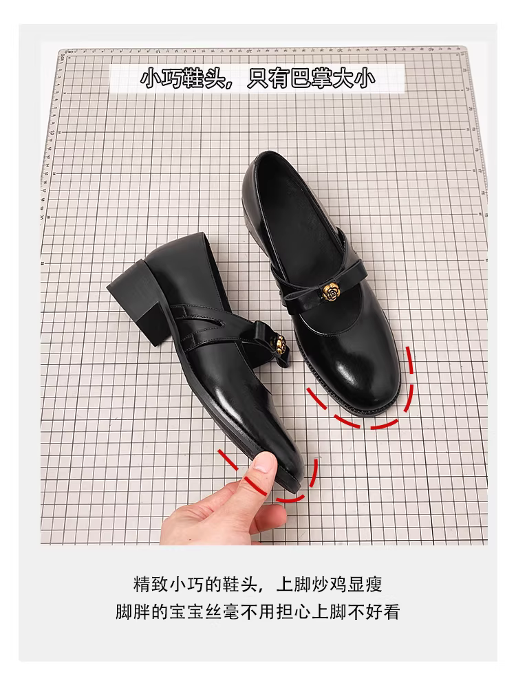 - Giày Mary Jane nữ da thật kiểu Pháp, chất liệu da cừu, quai hoa trà, gót vuông, kiểu dáng thấp.