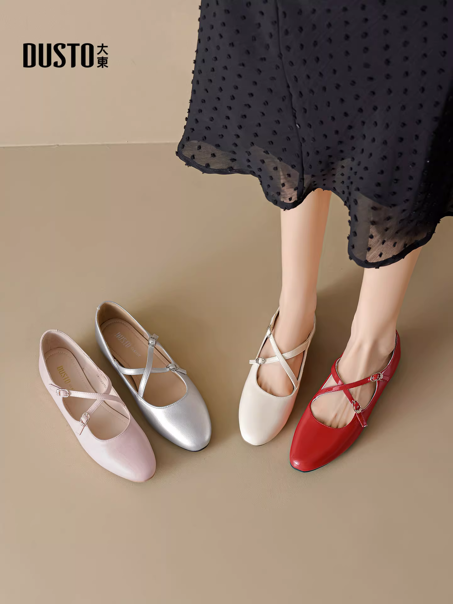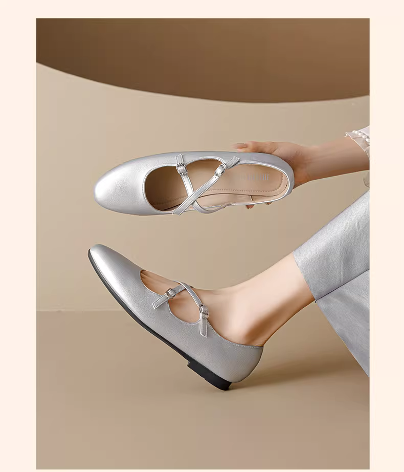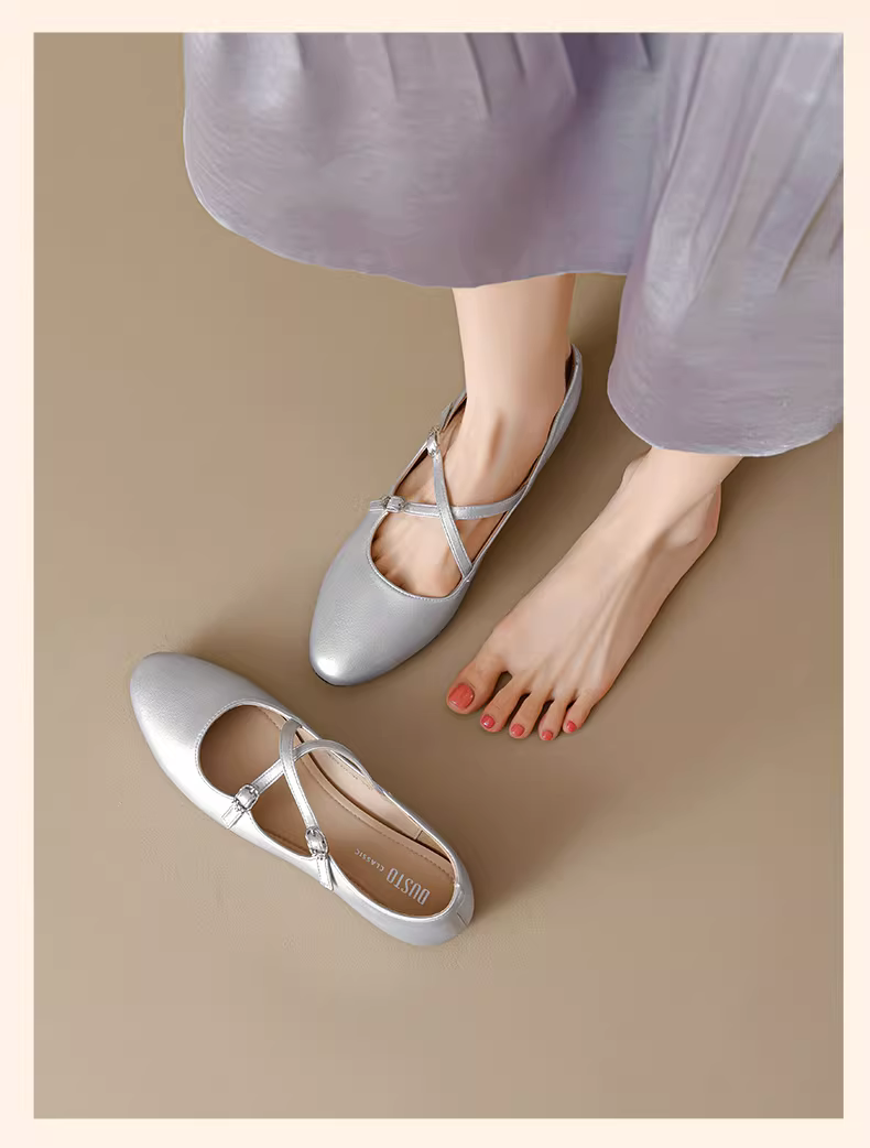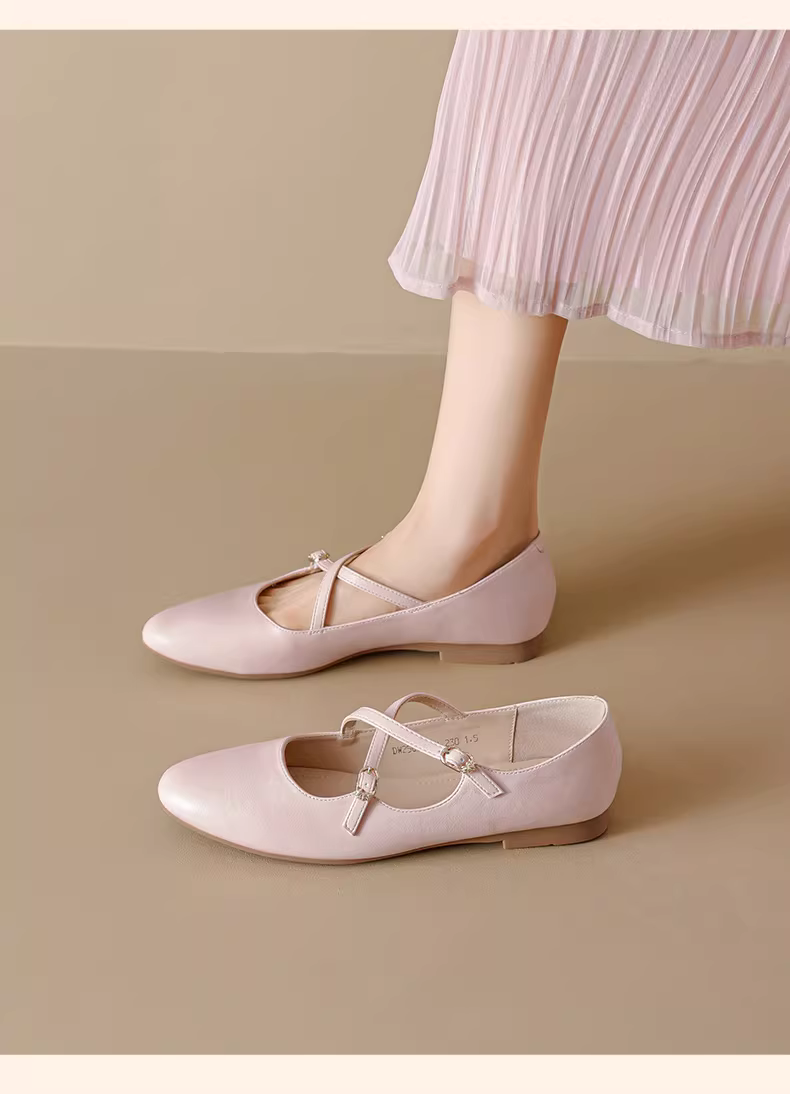 - Giày Mary Jane Pháp Dadong dành cho nữ 2025, mẫu mới mùa thu, kiểu quai chéo, giày bệt ballet gót thấp, đa năng.