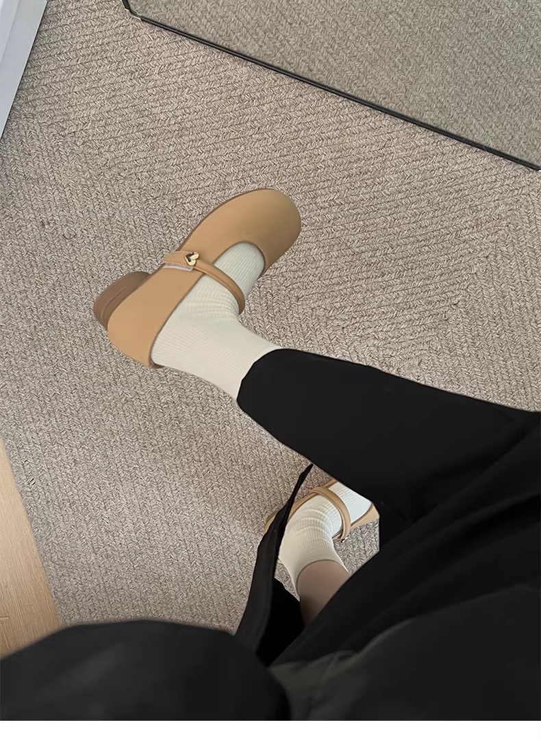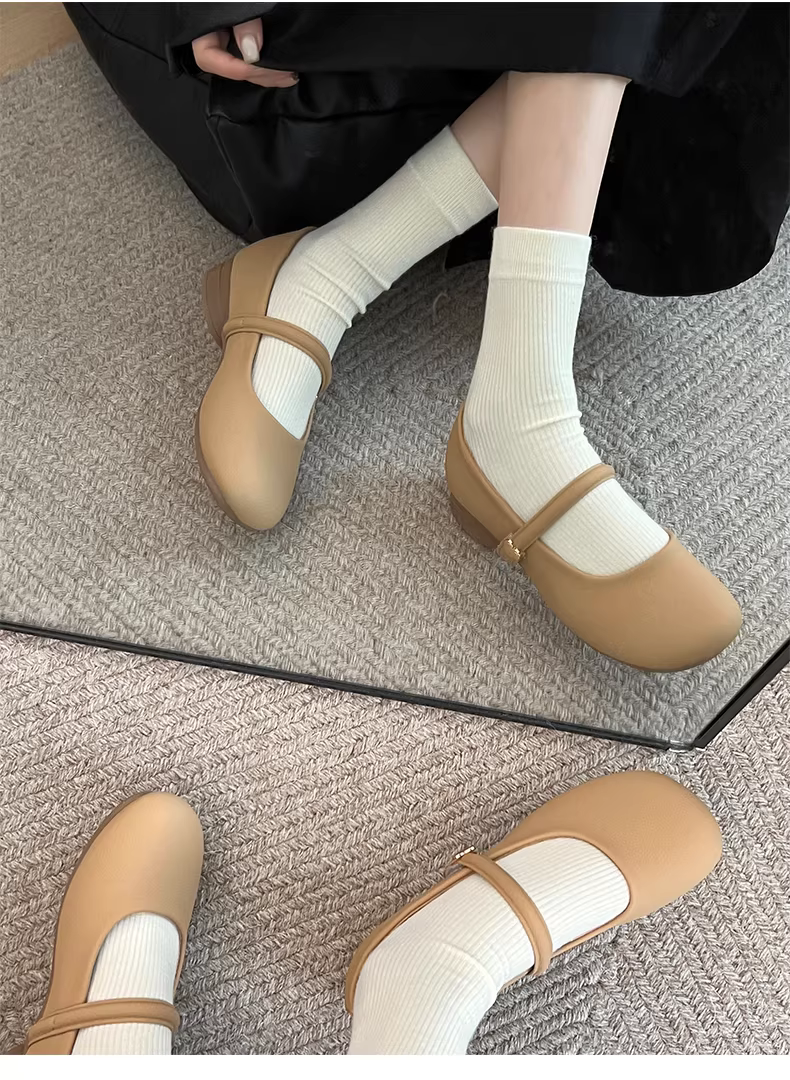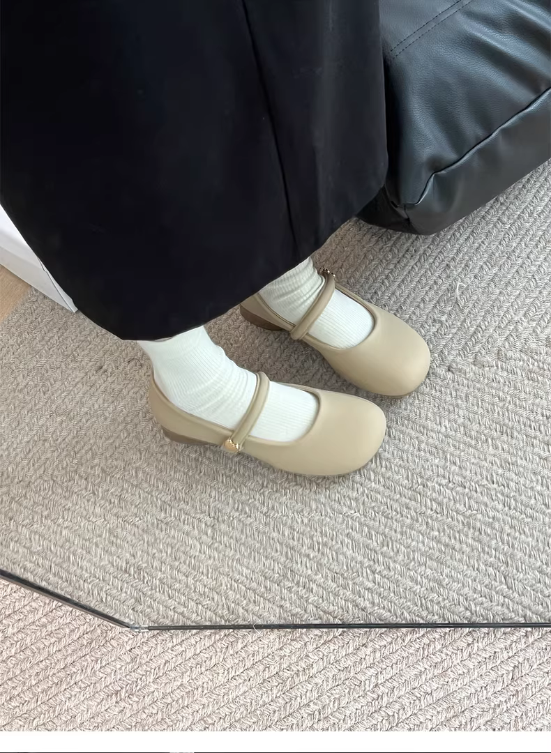- Giày mũi tròn, đế thấp, kiểu retro, đa năng, phối được với chân váy, giày cao gót đế thô dành cho nữ, giày Mary Jane trắng kiểu Pháp mới mùa thu 2025.