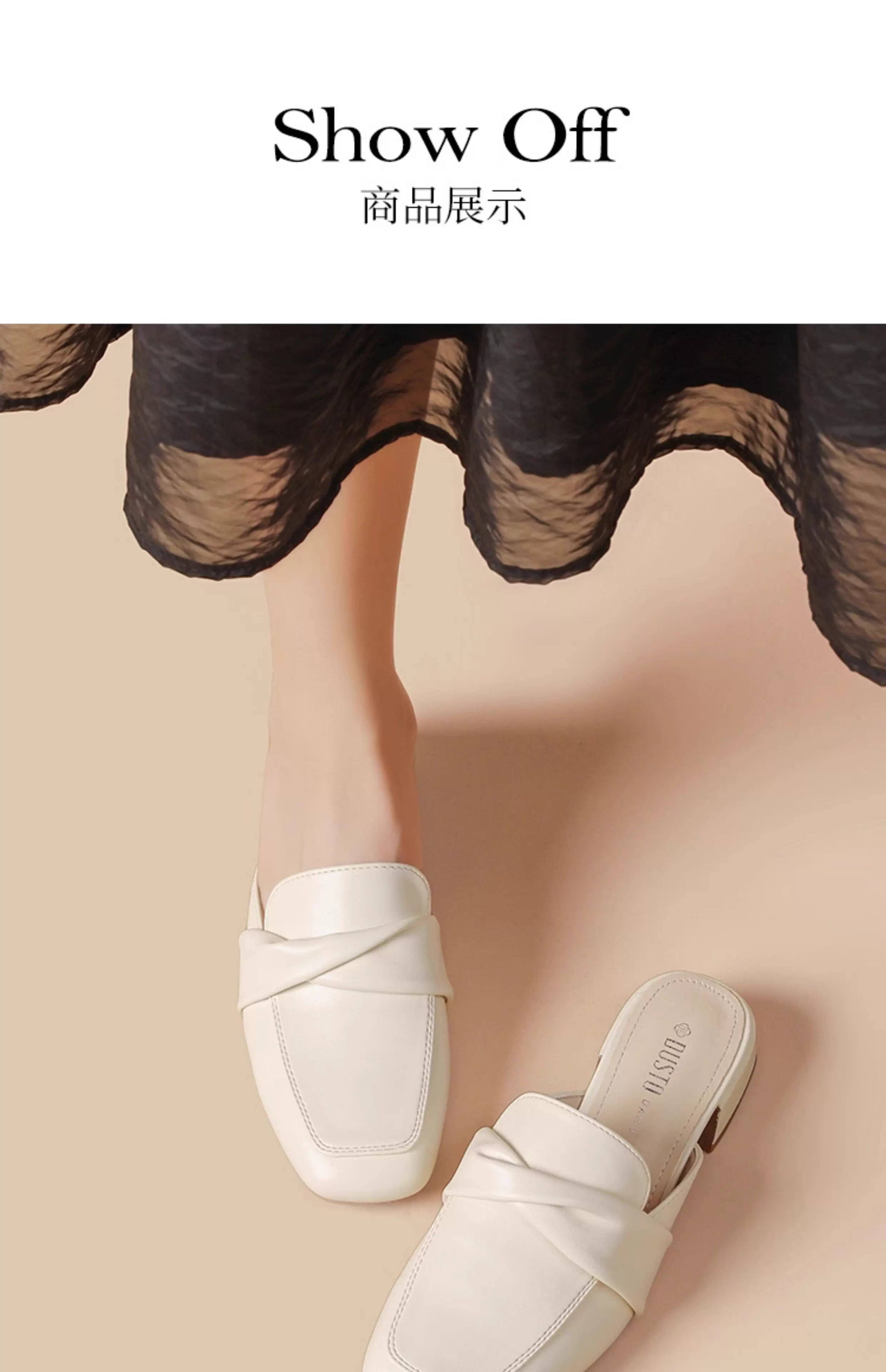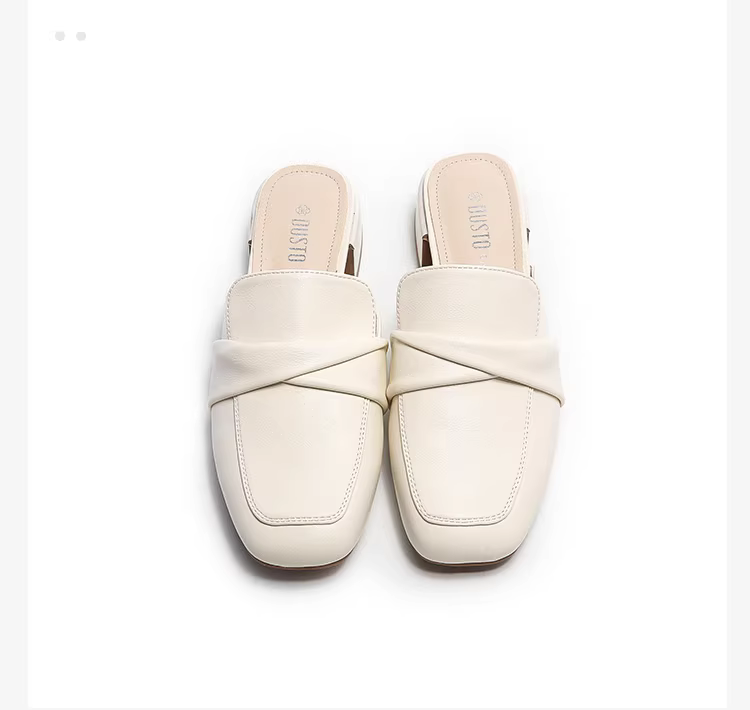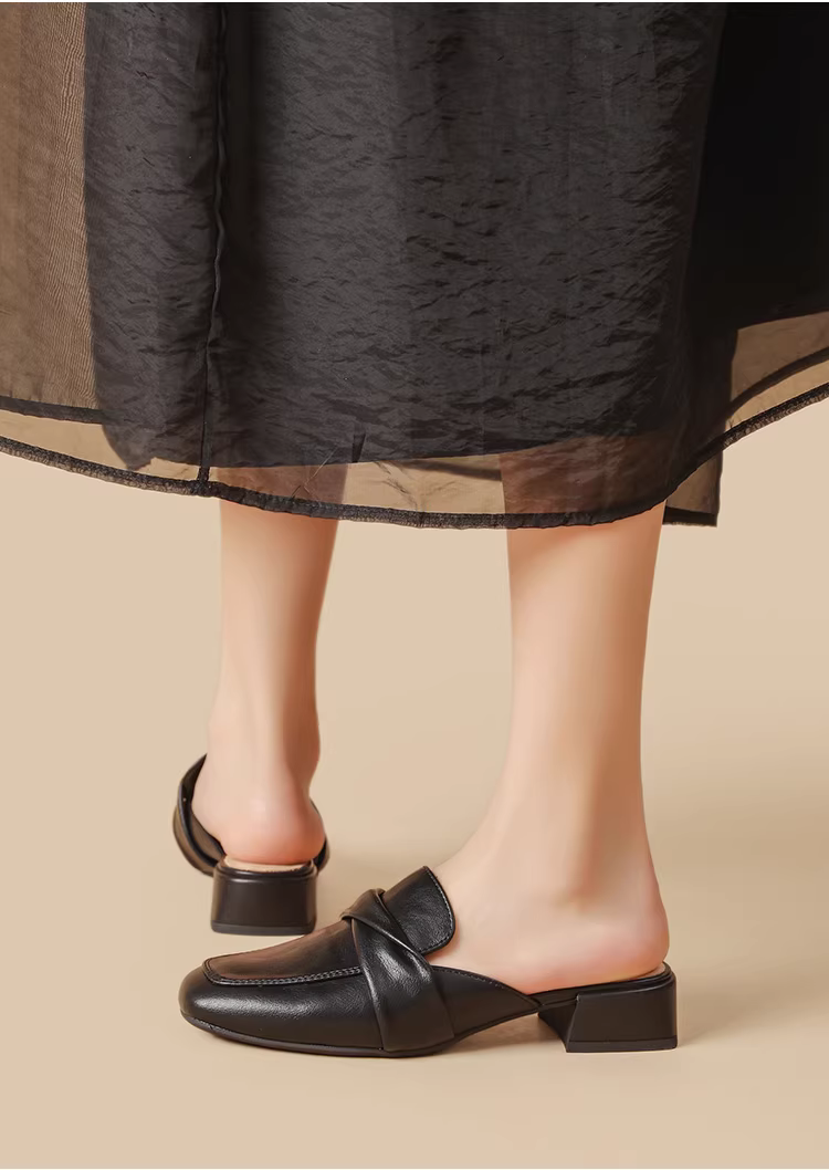 - Giày mules Dadong dành cho nữ, mẫu mới thu 2025, gót thấp, mũi kín, kiểu Pháp, giày đơn, mũi vuông, kiểu nửa dép