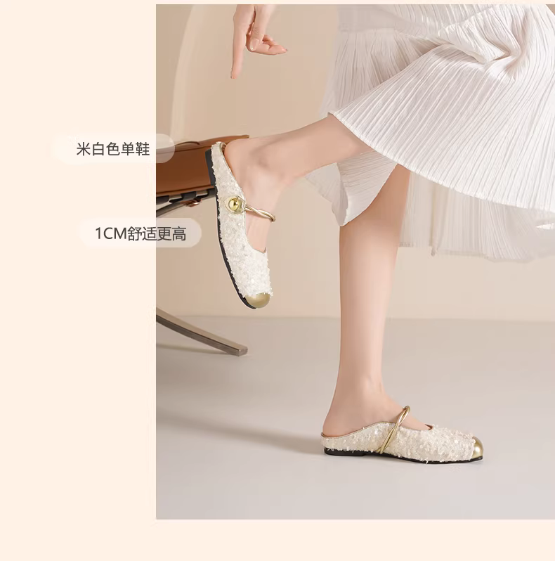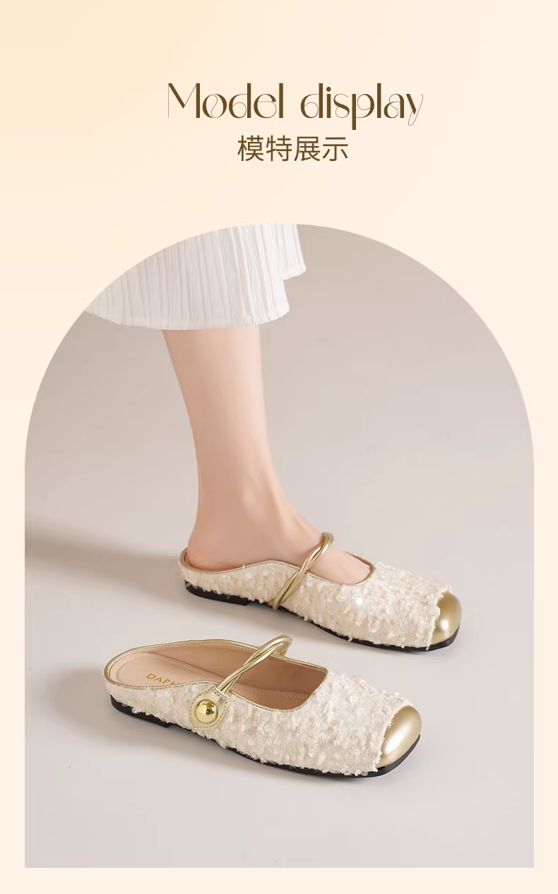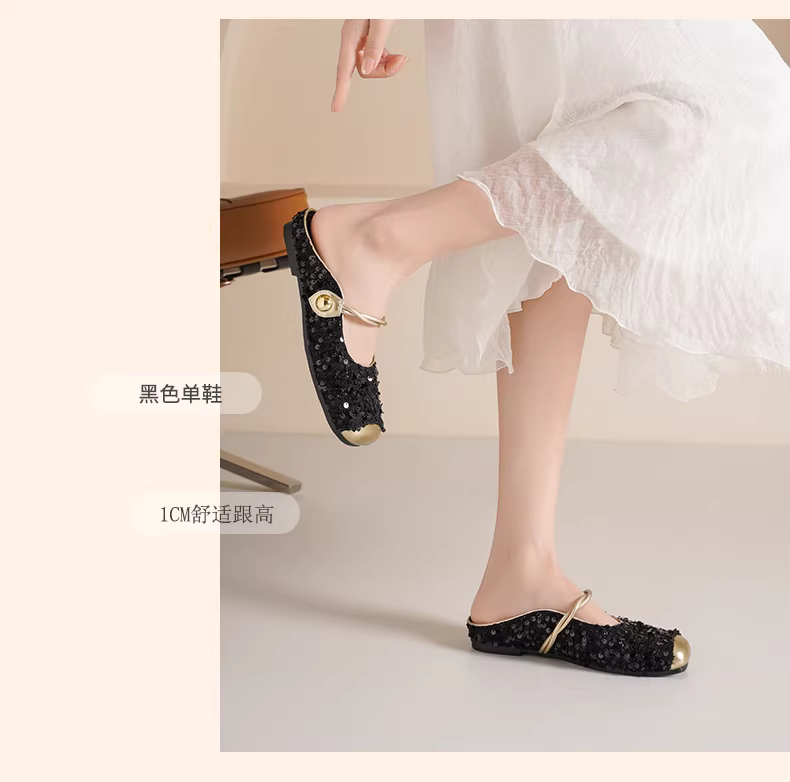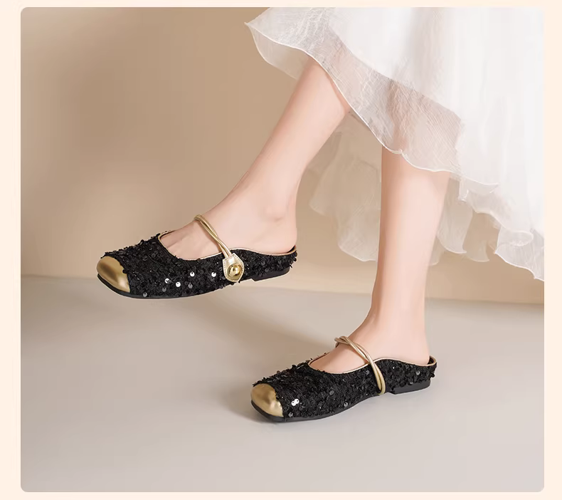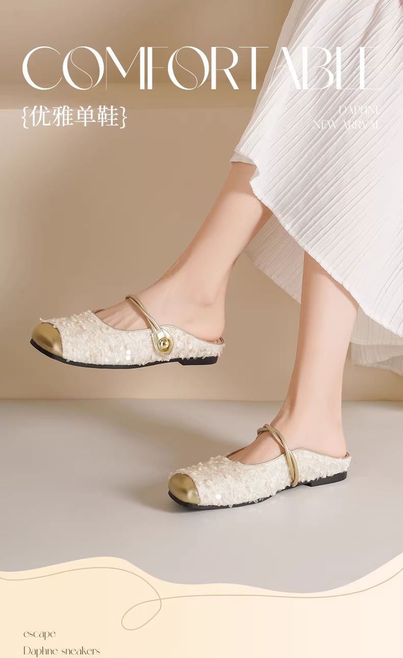 - Giày mules mũi kín Daphne dành cho nữ, kiểu mới 2025, giày nữ đính sequin kiểu Mary Jane, giày bệt mùa hè, giày đơn giản cho nữ