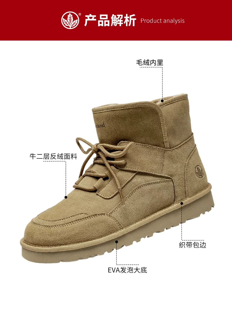 - Giày nam Maple Leaf Giày bốt đi tuyết mùa đông Giày cotton cổ cao đa năng mới có lớp lót lông cừu và giày bốt nam dày dặn để giữ ấm ở vùng Đông Bắc