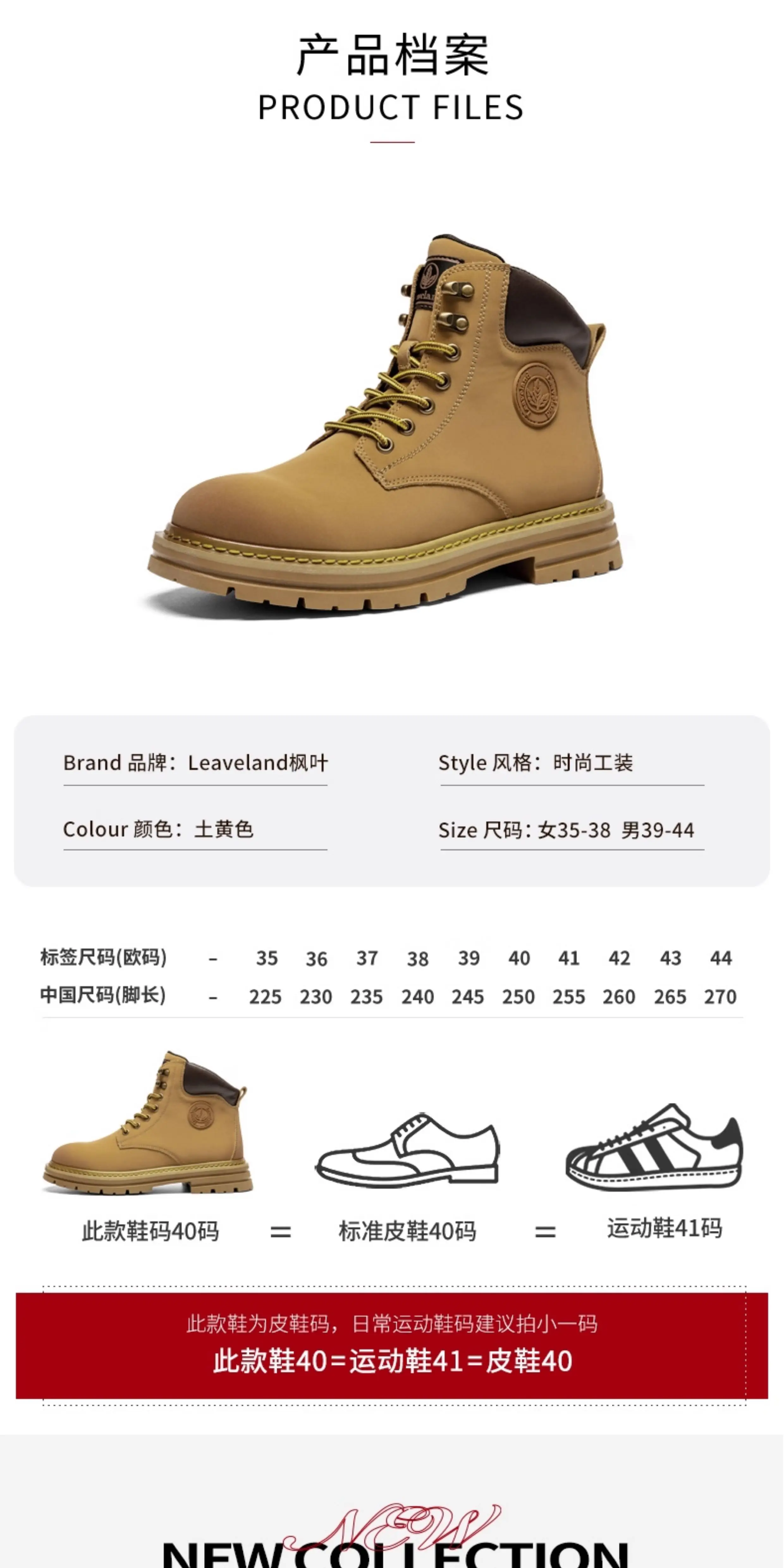 - Giày nam Maple Leaf, giày bốt màu vàng thời trang, giày bốt làm việc ngoài trời nam, giày đôi, giày bốt cổ điển, giày bông ấm áp, giày Martin nữ