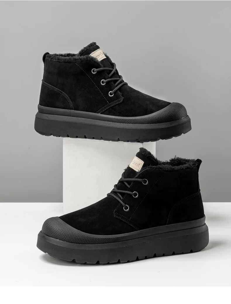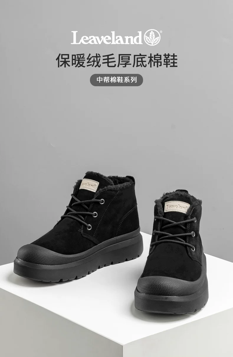 - Giày nam Maple Leaf Giày đi tuyết mùa đông Giày cotton nam mới có lót lông cừu Giày bốt cotton cổ trung bình thông thường dành cho nam Giày bốt cotton cổ trung bình Giày phương Đông