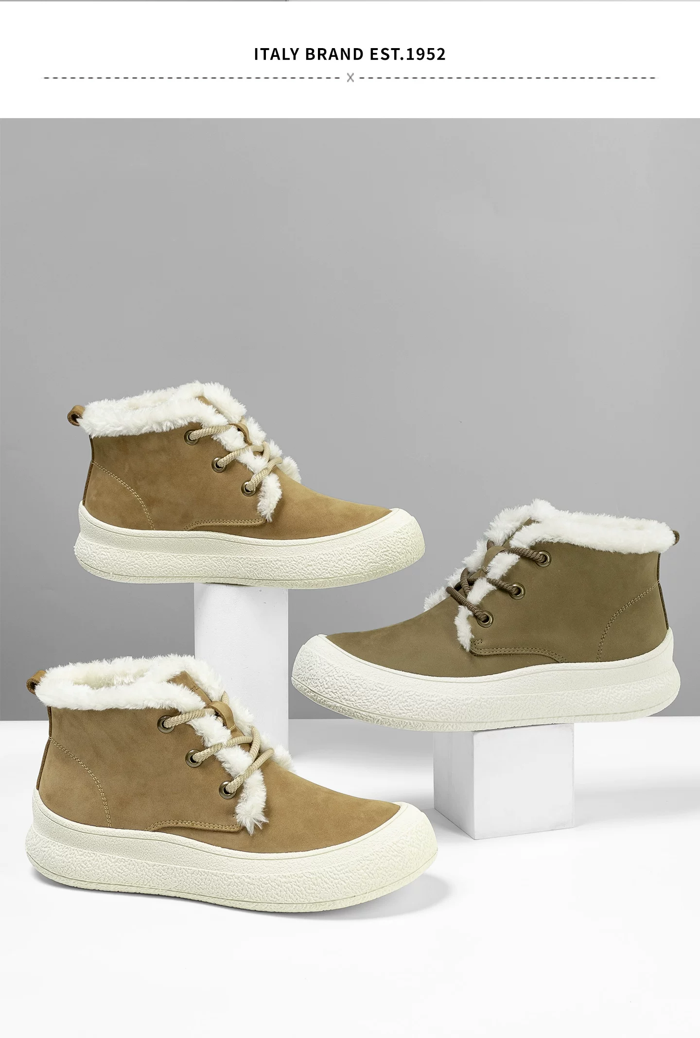 - Giày nam Maple Leaf mùa đông, ủng tuyết nam kiểu mới 2025, lót lông cừu dày giữ ấm, giày cotton cao cổ, giày nam thường ngày