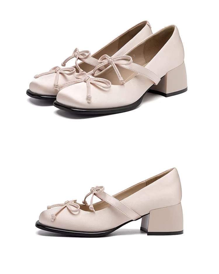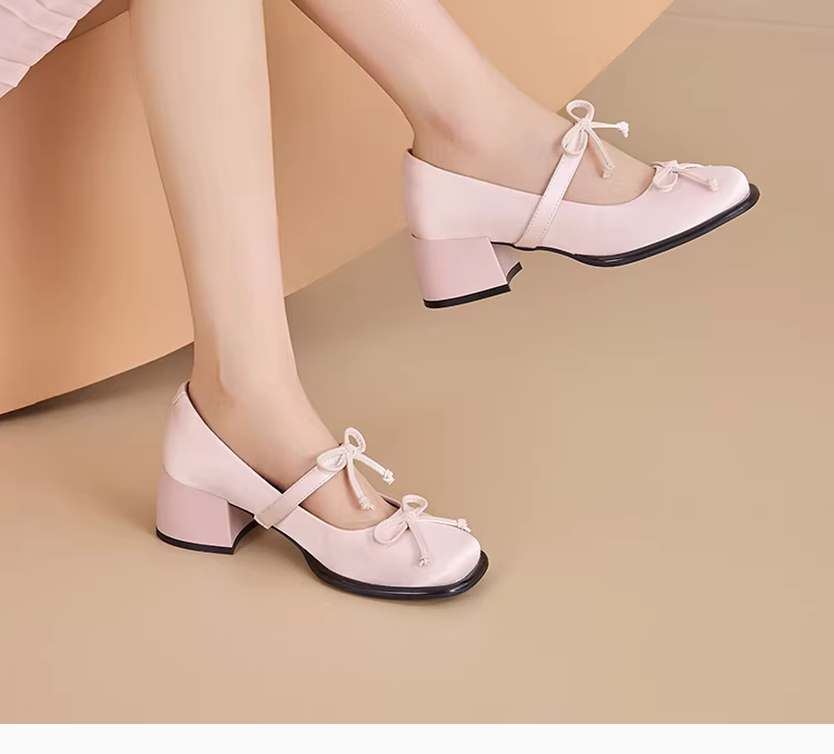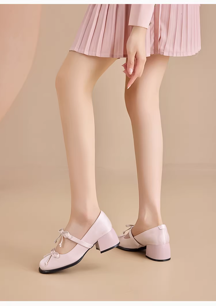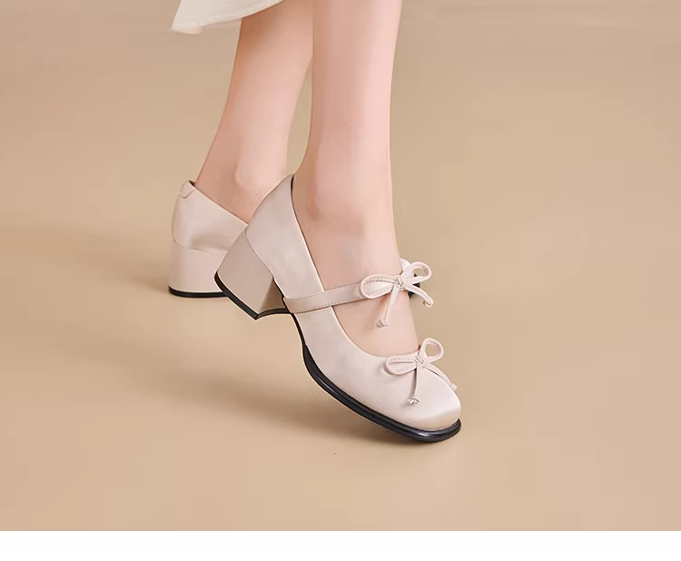 - Giày nữ Dada Dongfang 2025 kiểu mới mùa thu, thiết kế nơ phối chân váy, gót cao chunky, giày Mary Jane kiểu Pháp