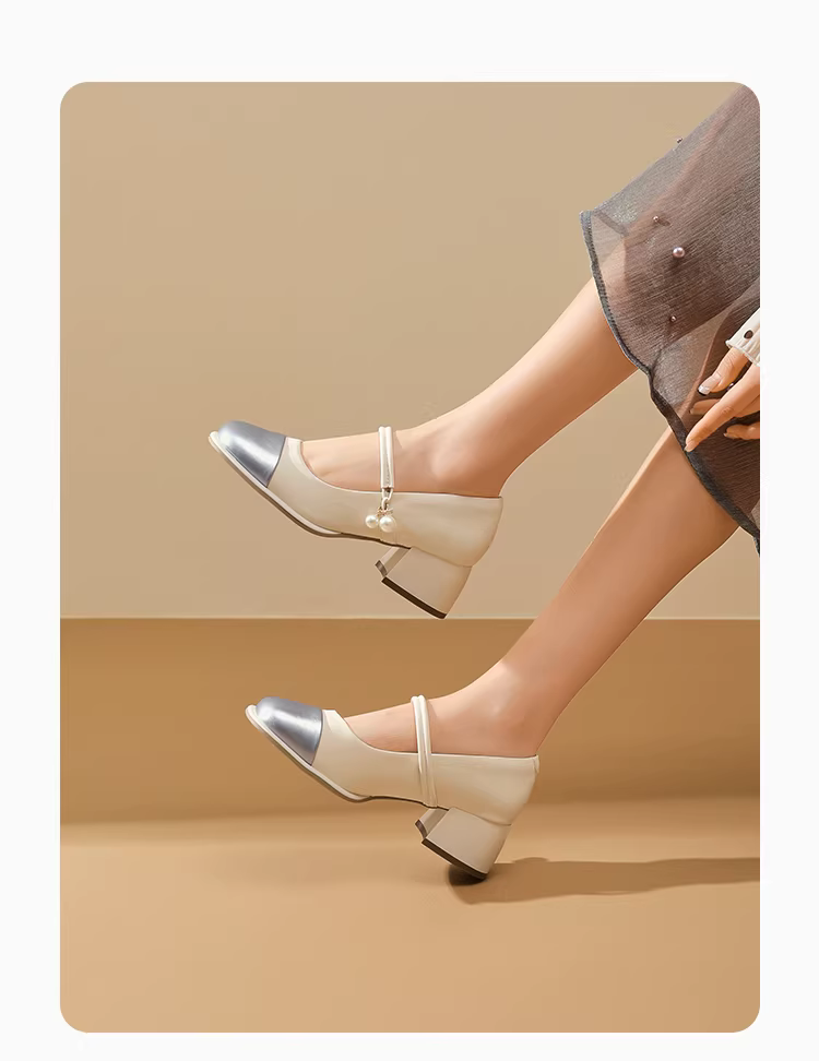 - Giày nữ Dadaoyang miệng nông kiểu mới mùa thu 2025, phối chân váy, giày nữ gót dày, giày cao gót Mary Jane kiểu Pháp.