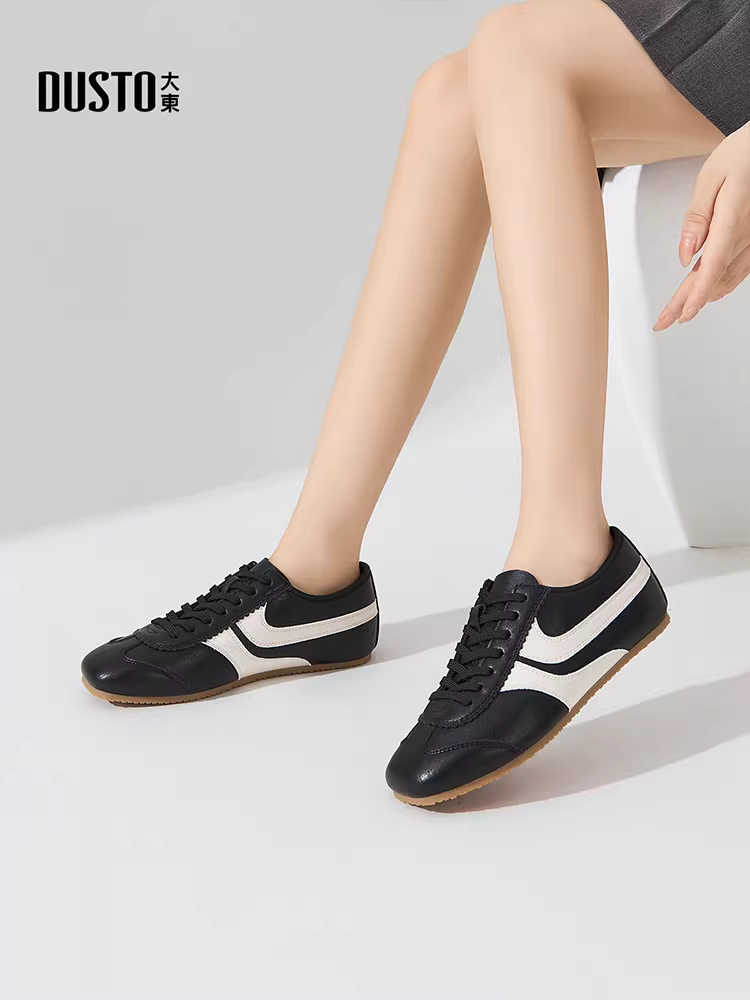- Giày nữ Dadong Dexun 2025 mới thu đông, giày đen thoải mái và thời trang, giày bệt phối màu.