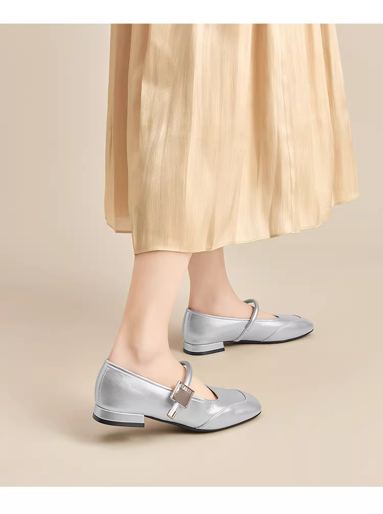 Giày nữ Dadong Red Autumn kiểu đơn giản năm 2025, giày cưới mới, giày cô dâu, mũi vuông, kiểu Mary Jane, giày nữ gót thô, giày da nhỏ