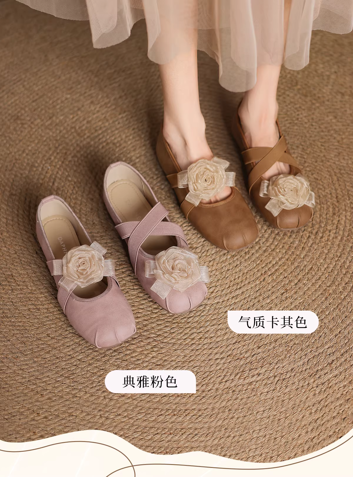 - Giày nữ Daphne Camellia kiểu Mary Jane Pháp 2025, giày bệt da mùa hè mới, giày ba lê đế thấp, giày đơn giản dành cho nữ