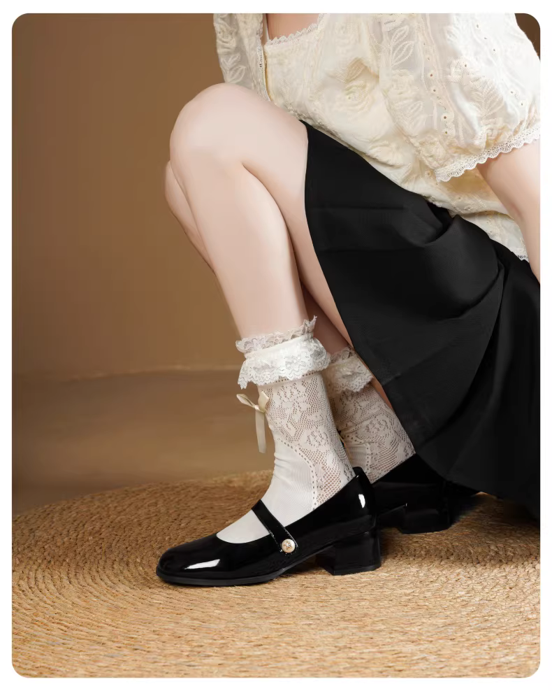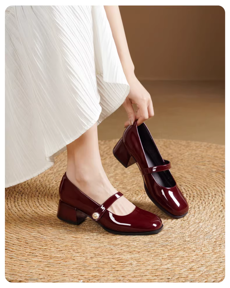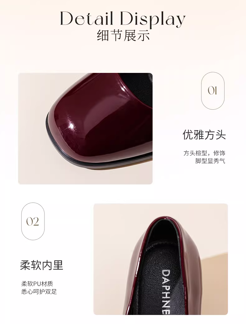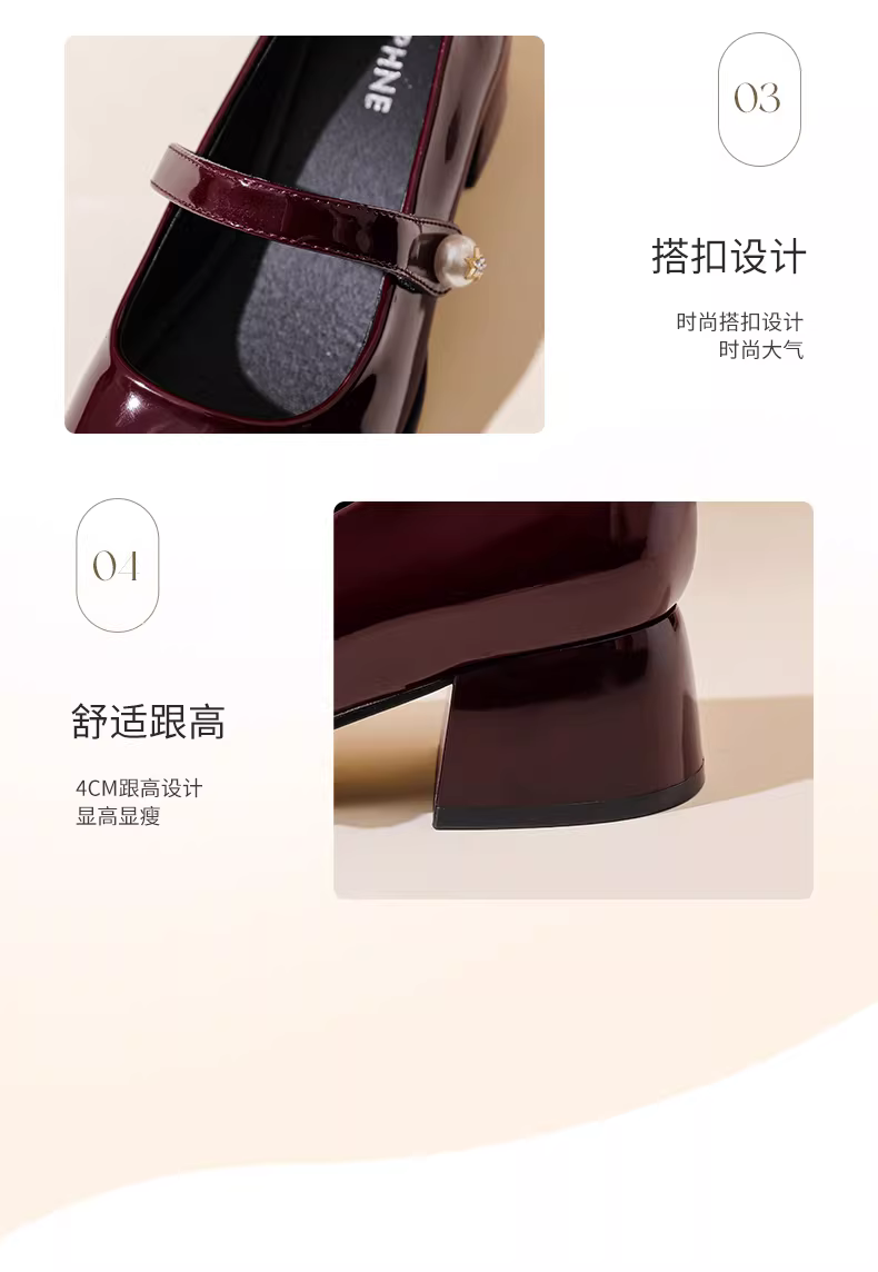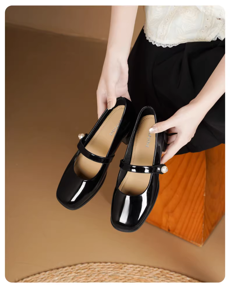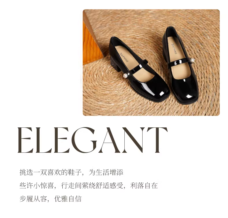 - Giày nữ Daphne French Mary Jane 2025 kiểu mới mùa thu cổ điển, gót dày, giày cưới, giày nữ đế thấp đính ngọc trai