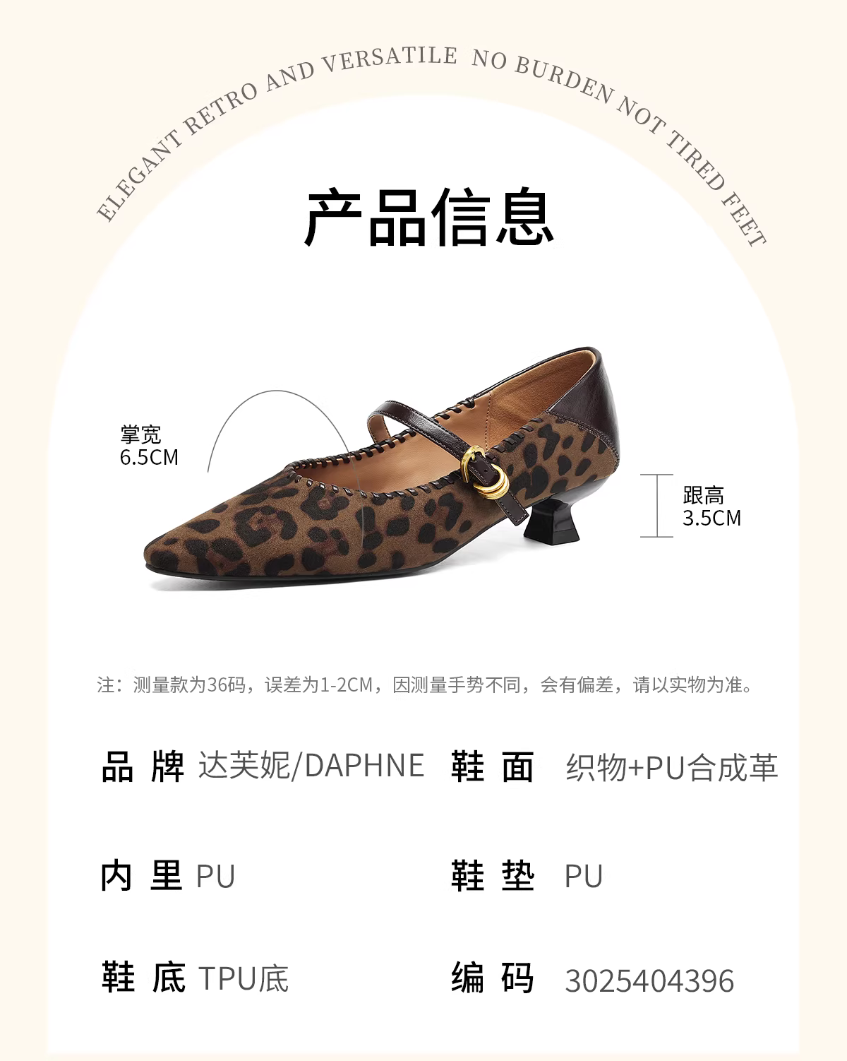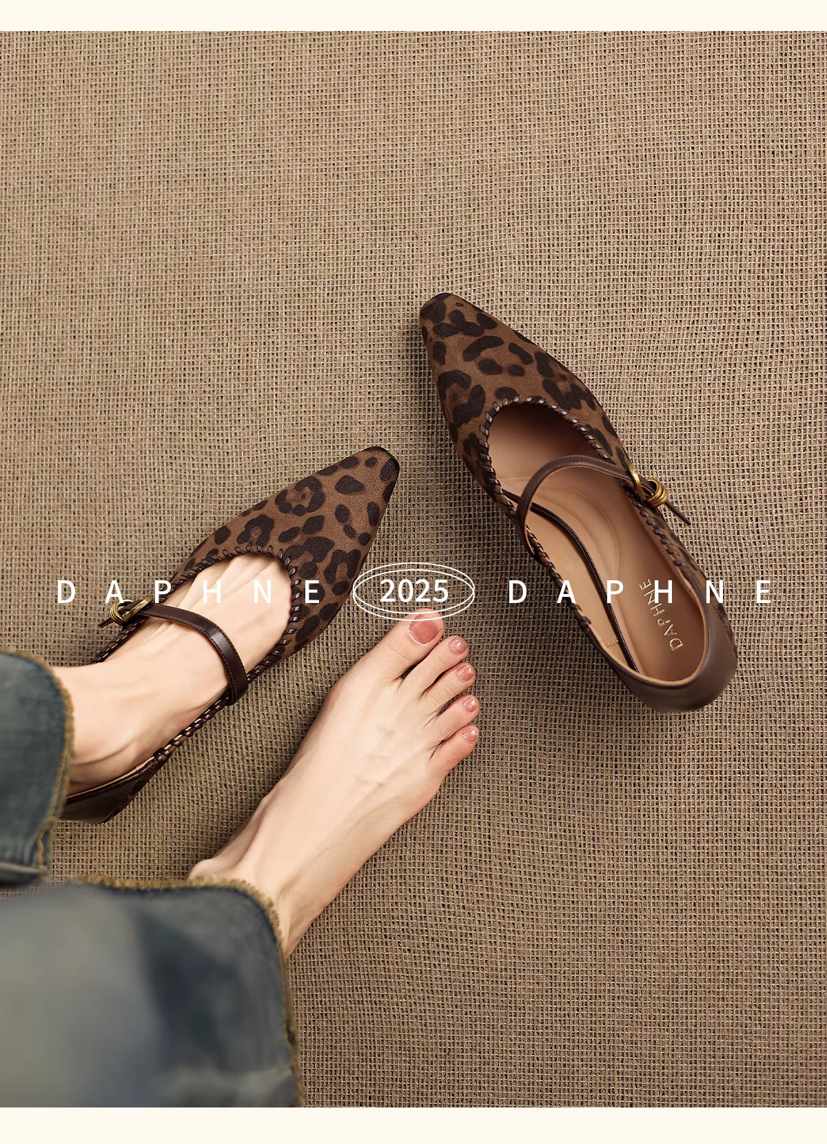 - Giày nữ Daphne họa tiết da báo mũi nhọn đế thấp mùa thu mới 2025 kiểu retro giày cao gót Mary Jane