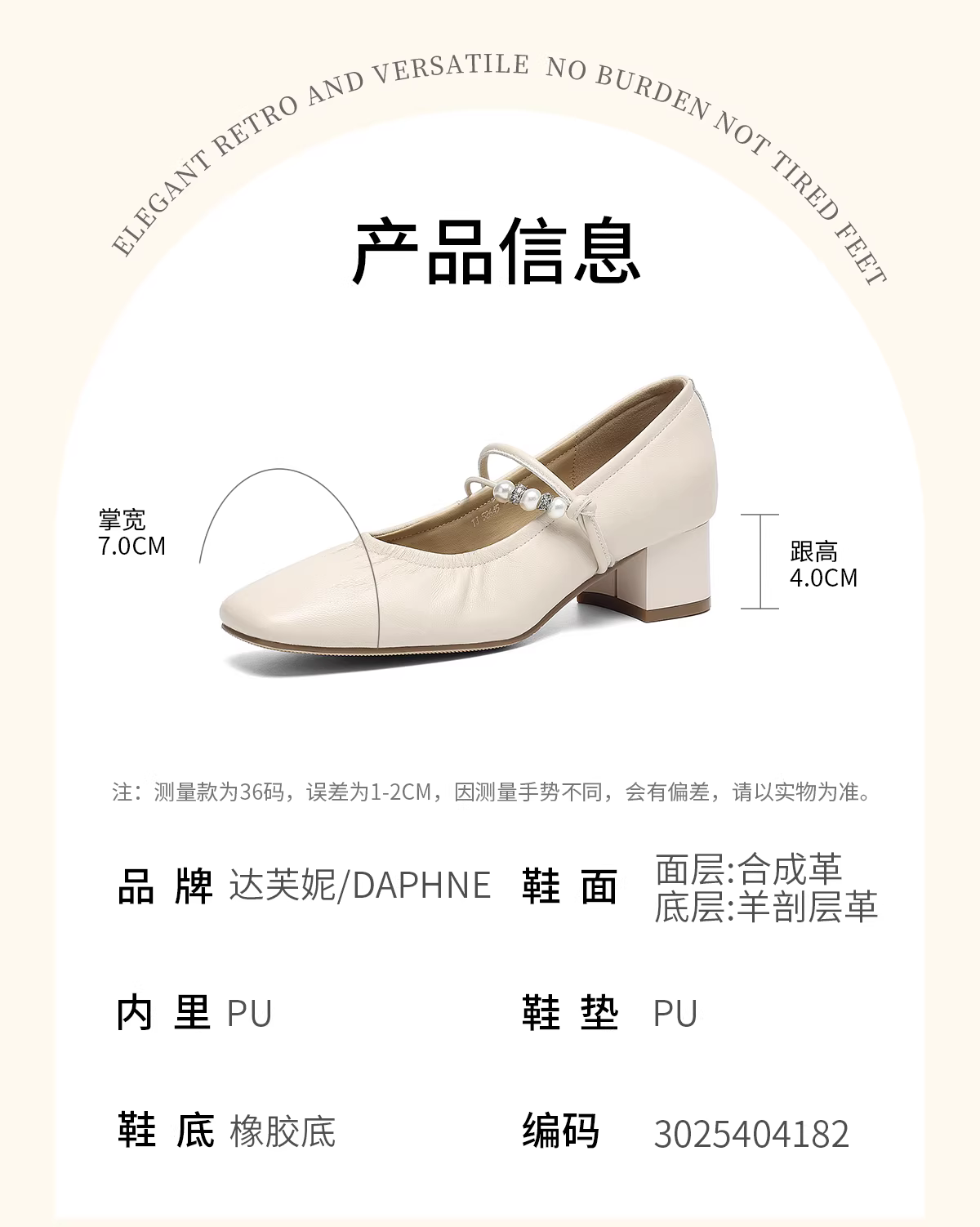 - Giày nữ Daphne kiểu Pháp mới 2025, kiểu Mary Jane, gót dày, giày da nhỏ nhắn, kiểu dáng thời trang cho mùa thu.