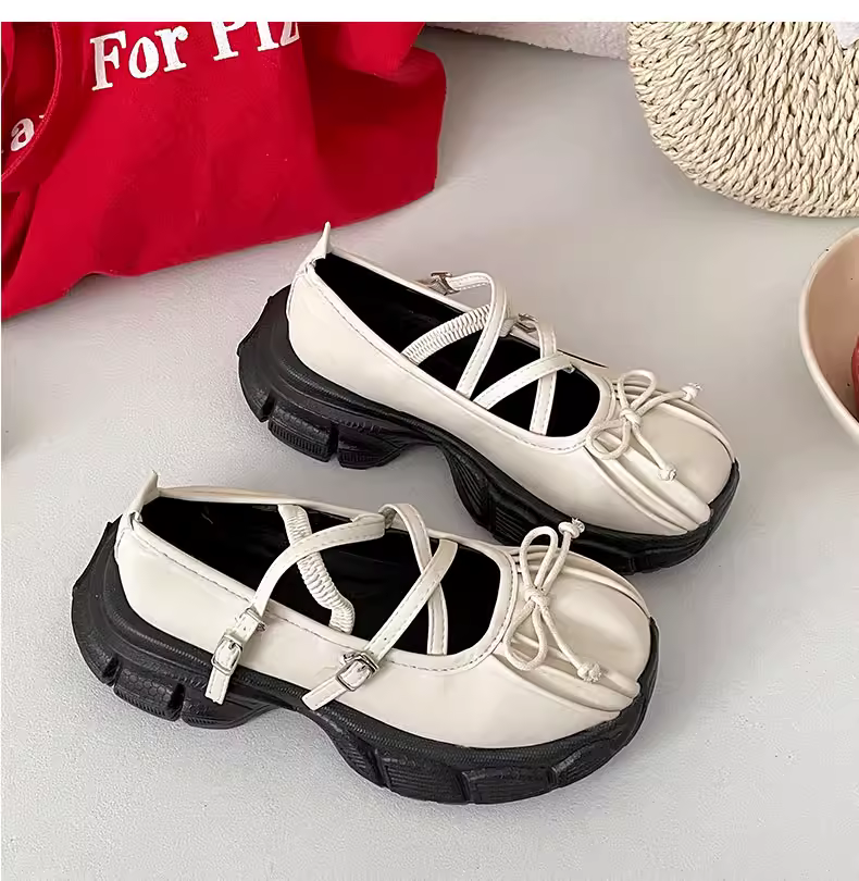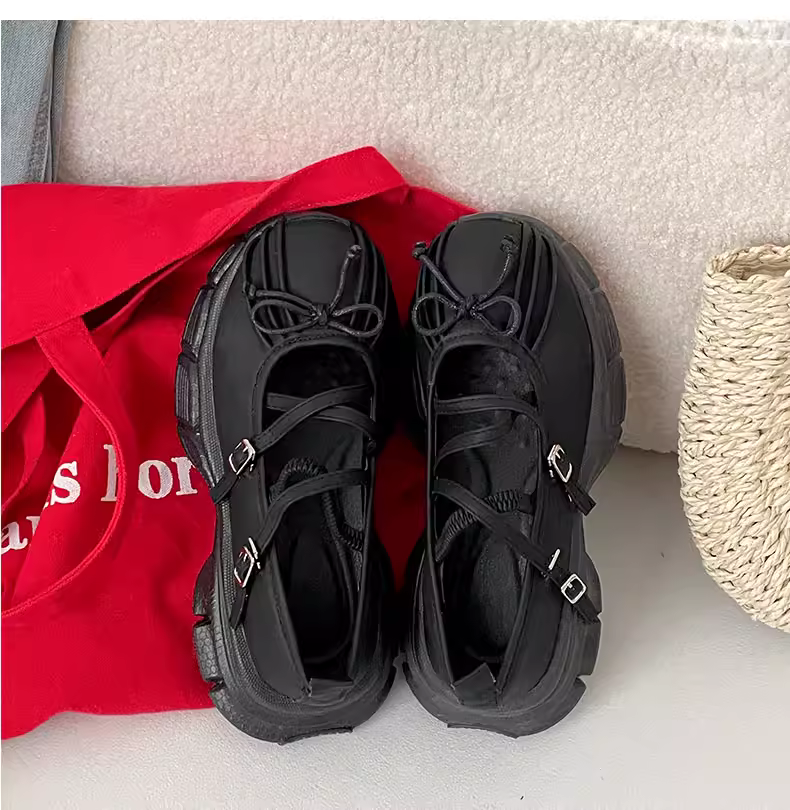- Giày nữ đế dày kiểu Pháp cổ điển màu đen, kiểu dáng mới mùa thu 2025, phối chân váy, giày Mary Jane thể thao, kiểu ballet.