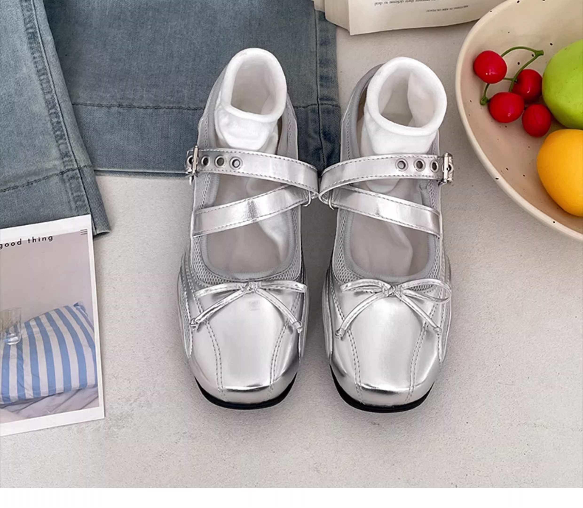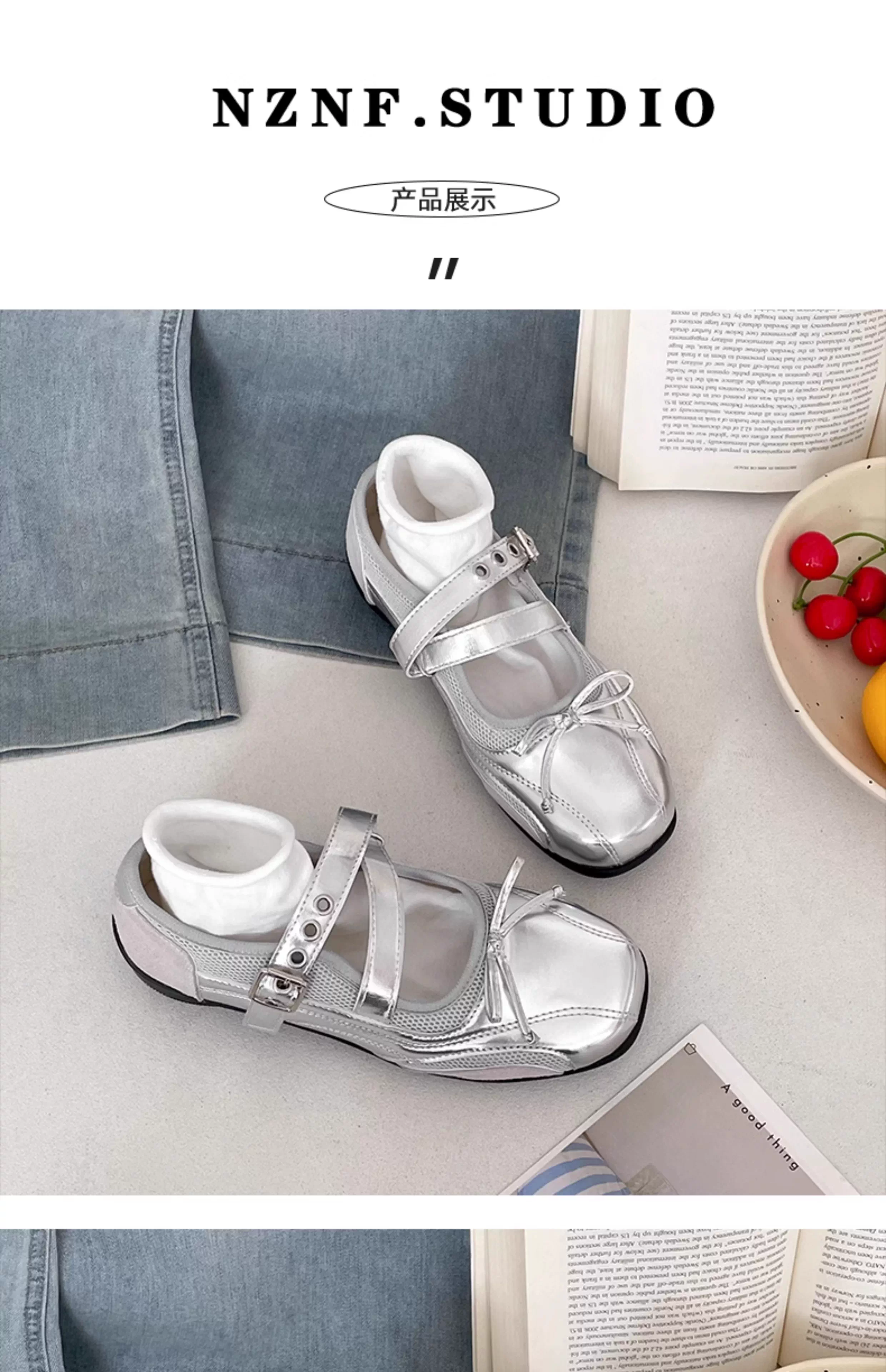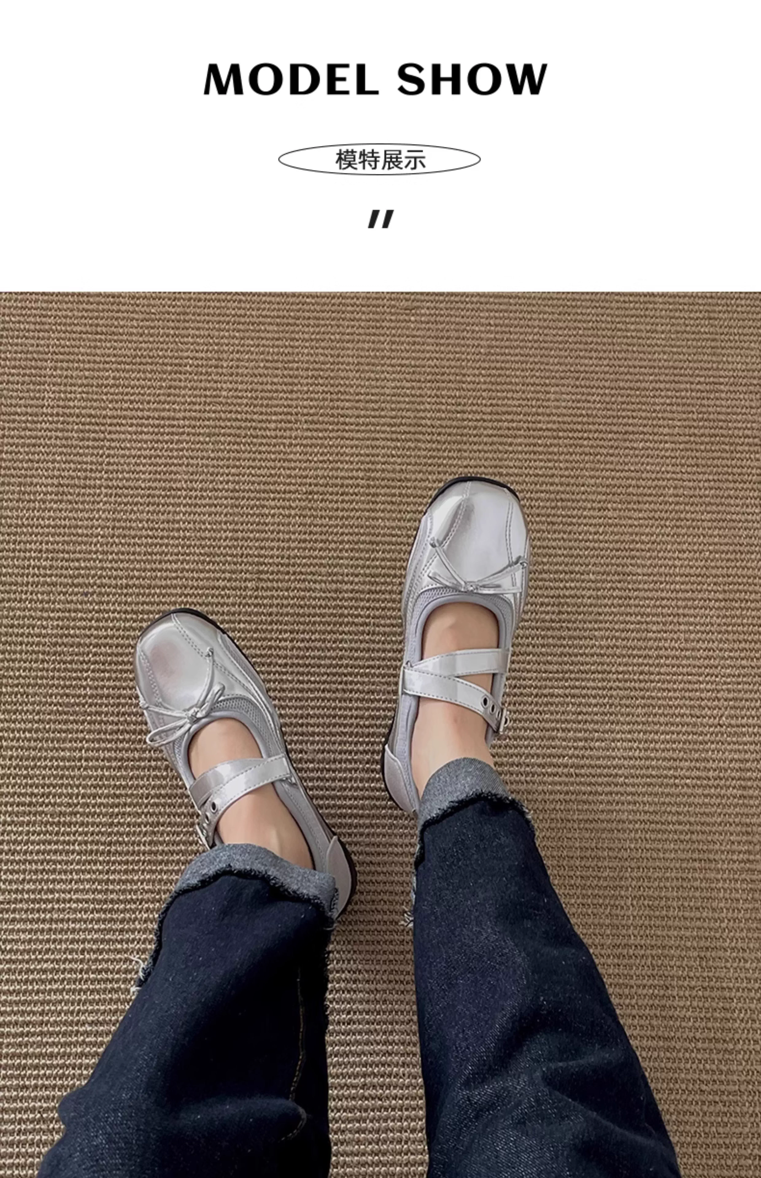- Giày nữ đế dày mũi tròn kiểu Pháp cổ điển màu bạc, mẫu mới thu đông 2025, giày Mary Jane đa năng phối chân váy.