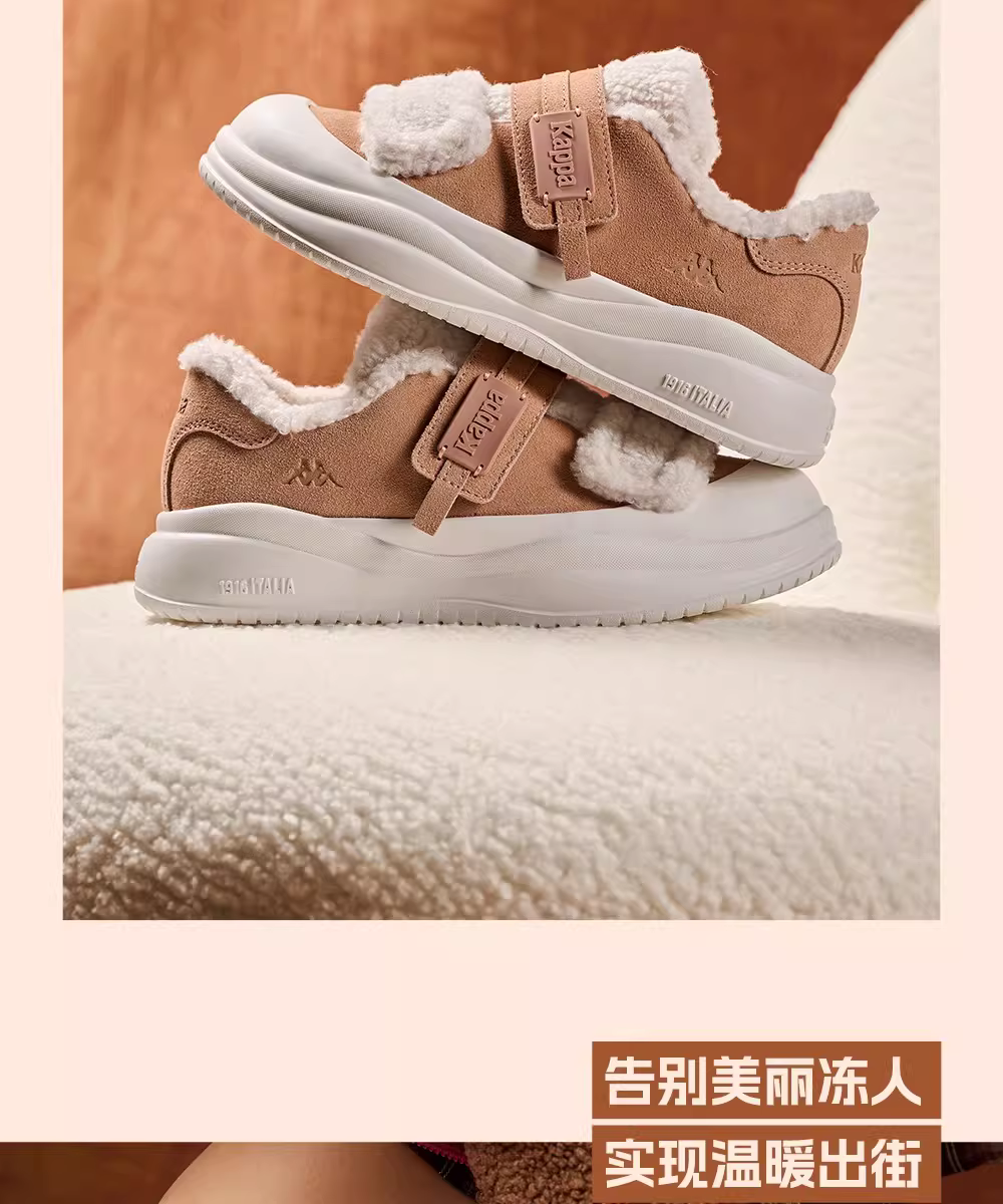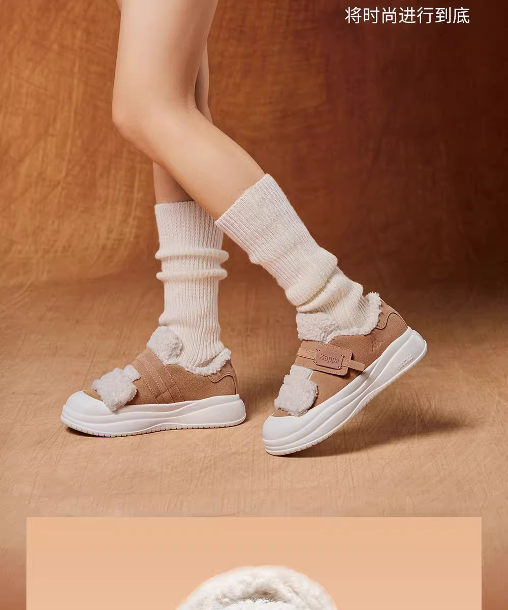 - Giày nữ Kappa lót lông cừu giữ ấm mùa đông 2025 kiểu mới, giày ngoài trời lông mềm, kiểu lười, dán dính, giày bông đôi