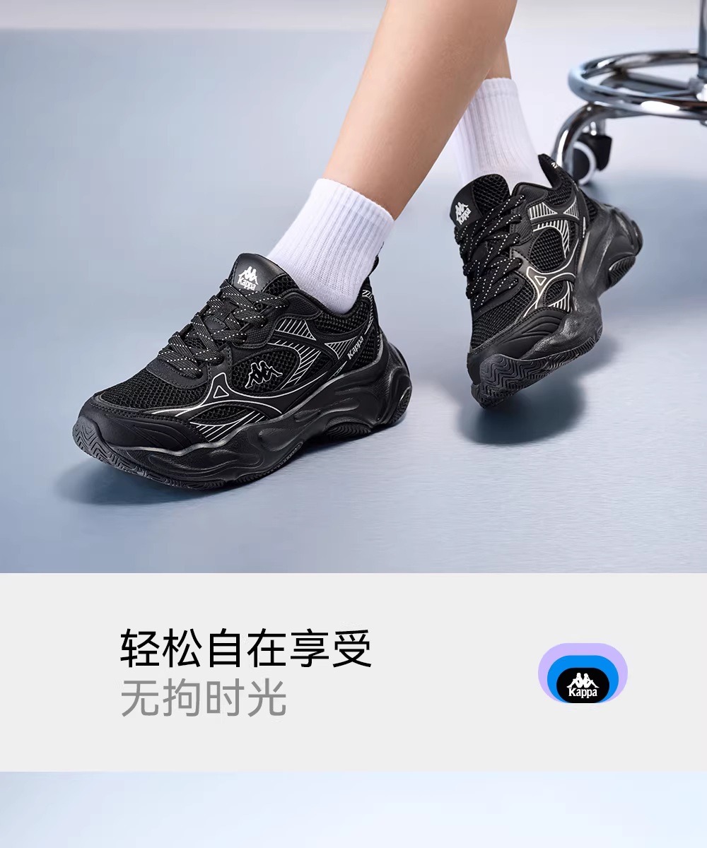 Giày nữ Kappa mùa đông mới, giày thể thao tăng chiều cao nữ 2025, giày bố siêu thời trang, đa năng, đế dày, giày thường ngày
