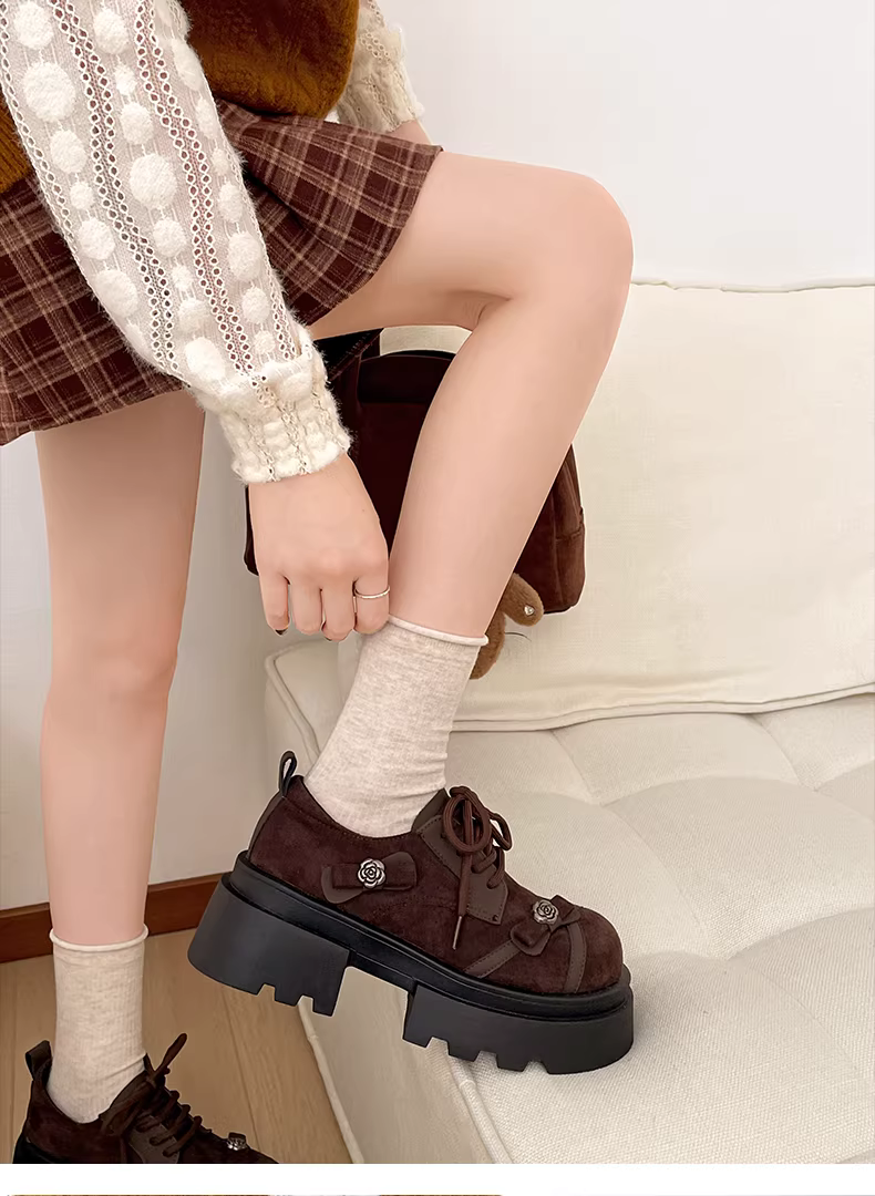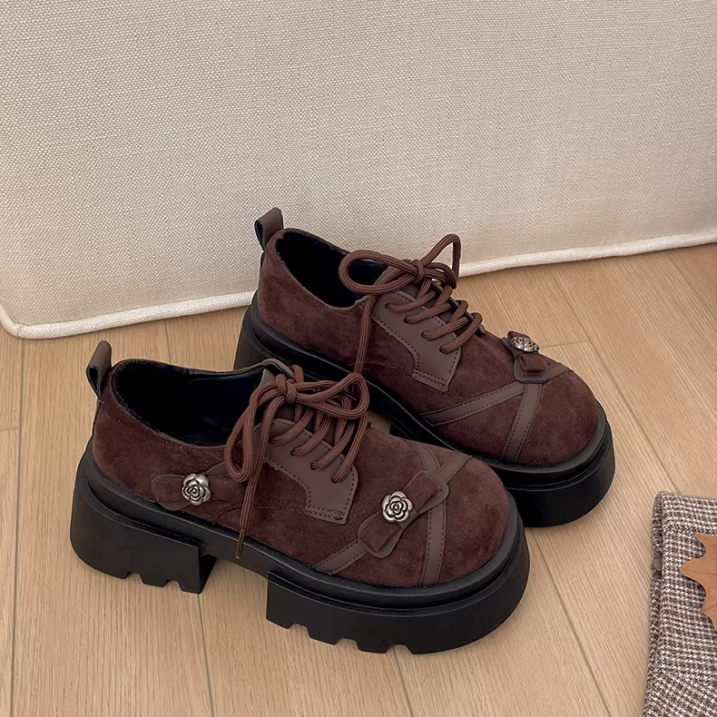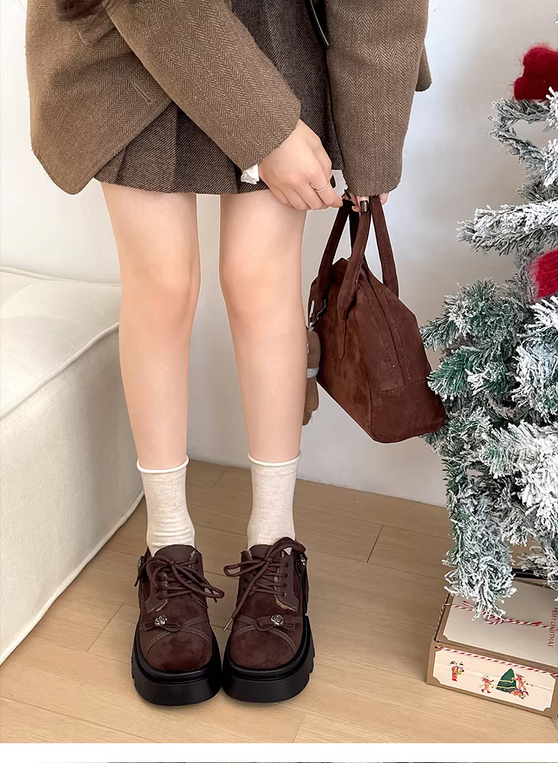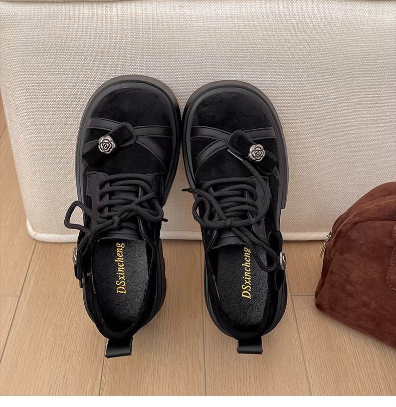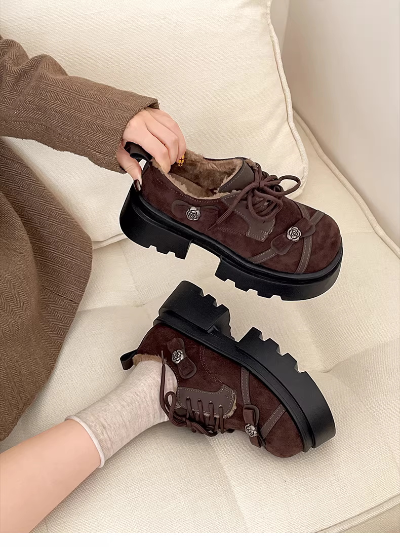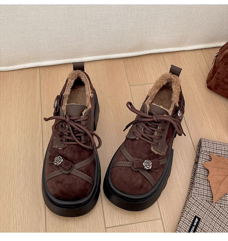 - Giày nữ kiểu Anh cổ điển đế dày lót lông cừu giữ ấm mùa thu đông 2025 đa năng kiểu Mary Jane phối chân váy