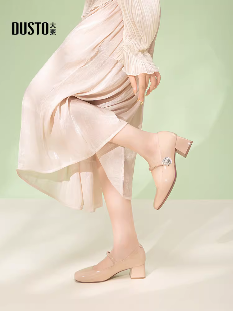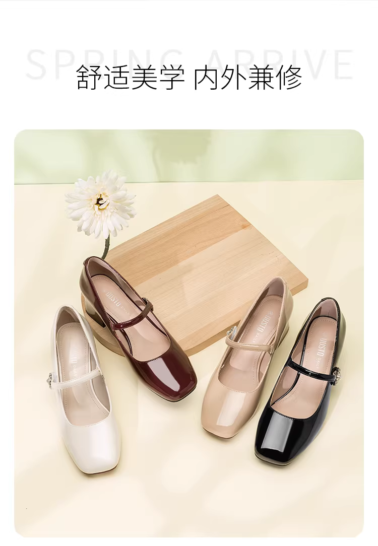 - Giày nữ kiểu Pháp Dadong 2025 mới mùa thu màu trắng mũi vuông gót vuông giày Mary Jane gót trung bình giày nữ giày da nhỏ