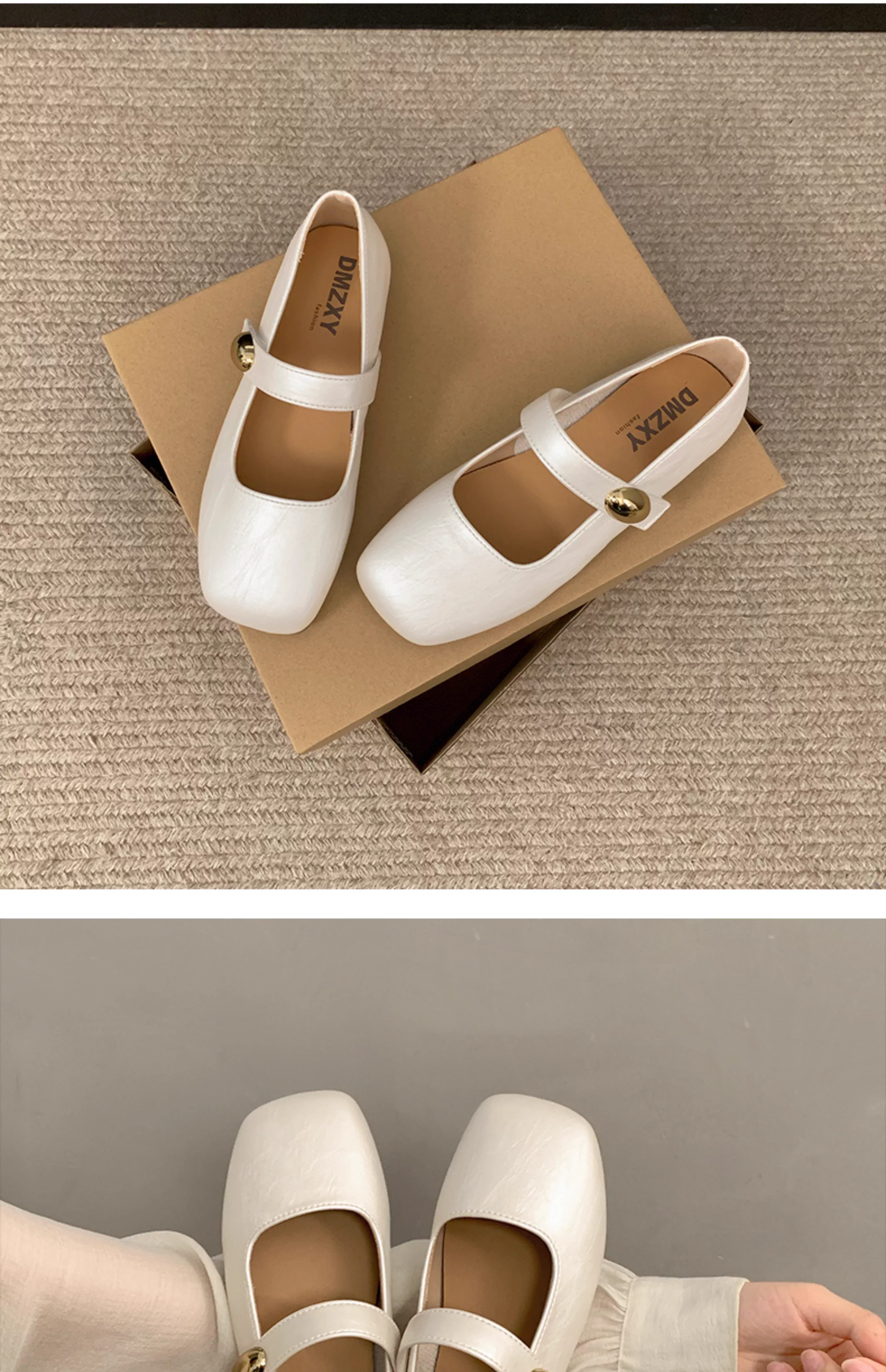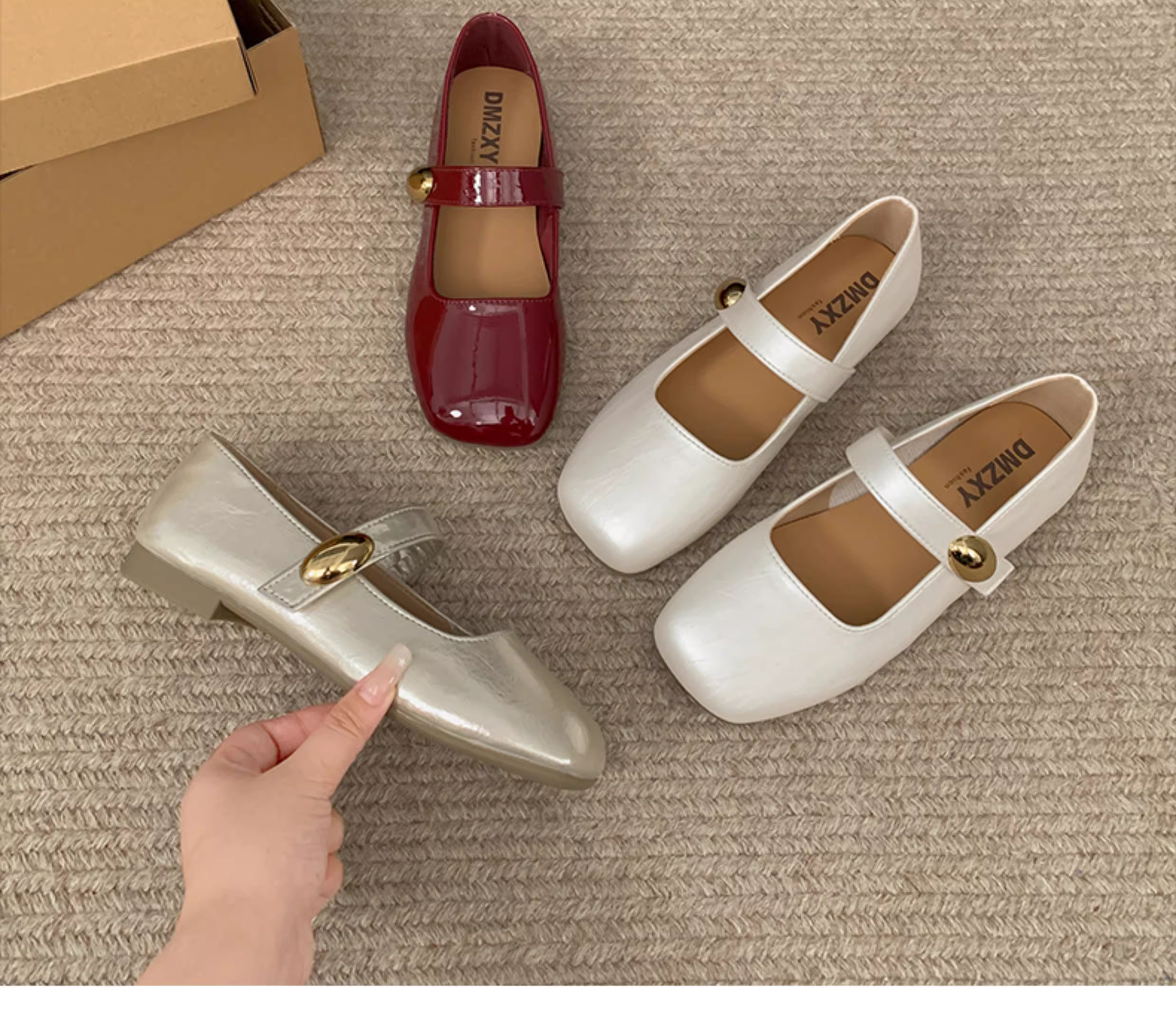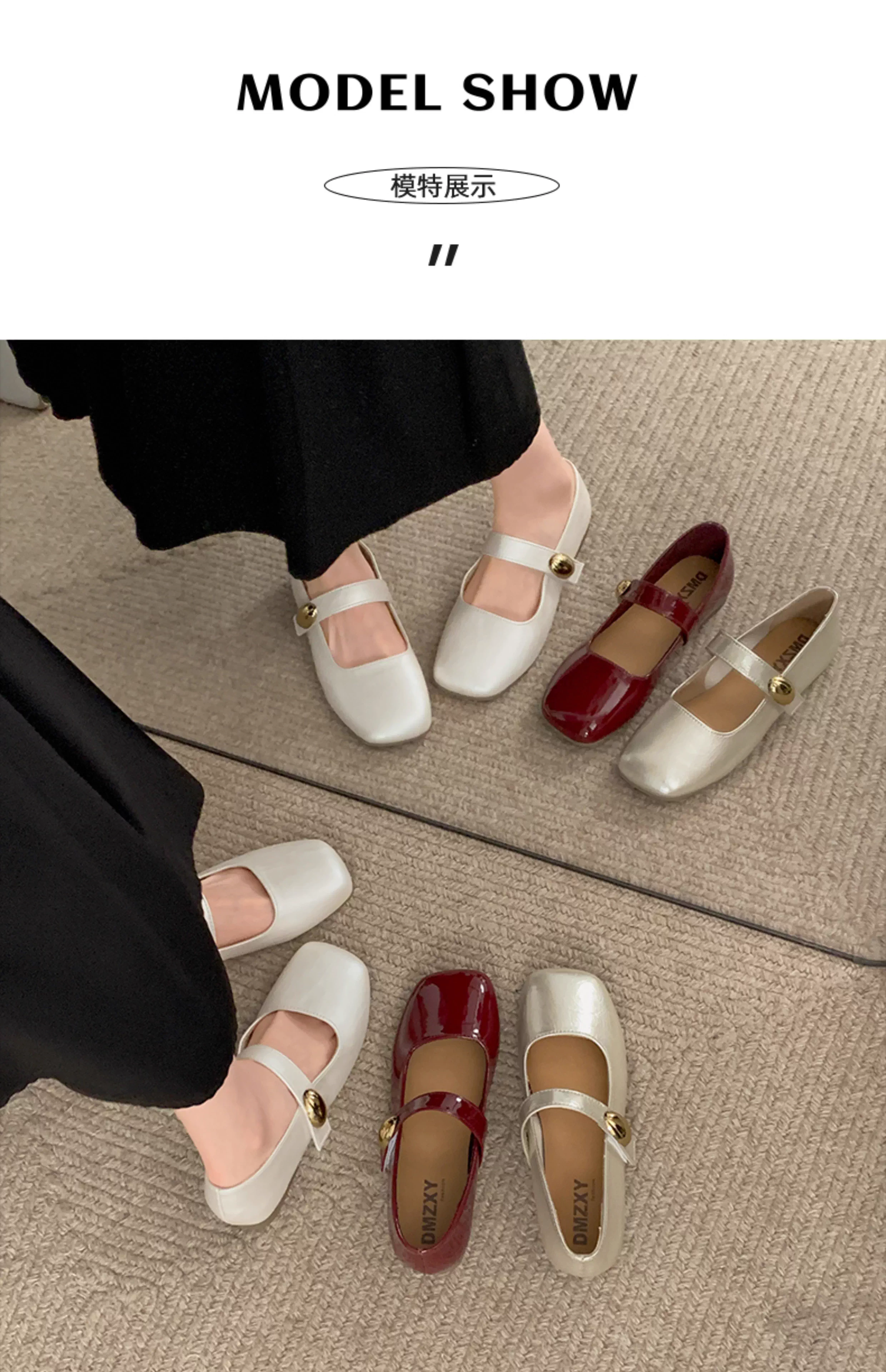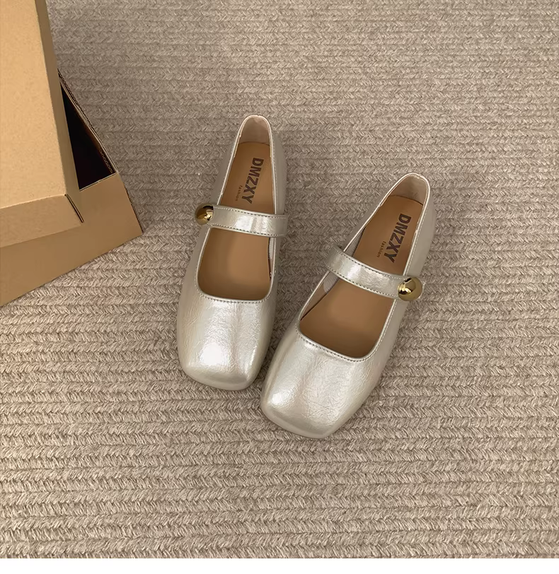 - Giày nữ kiểu Pháp màu đỏ cổ điển, mũi vuông, gót thấp, mùa thu 2025 mẫu mới, giày Mary Jane đa năng phối chân váy.