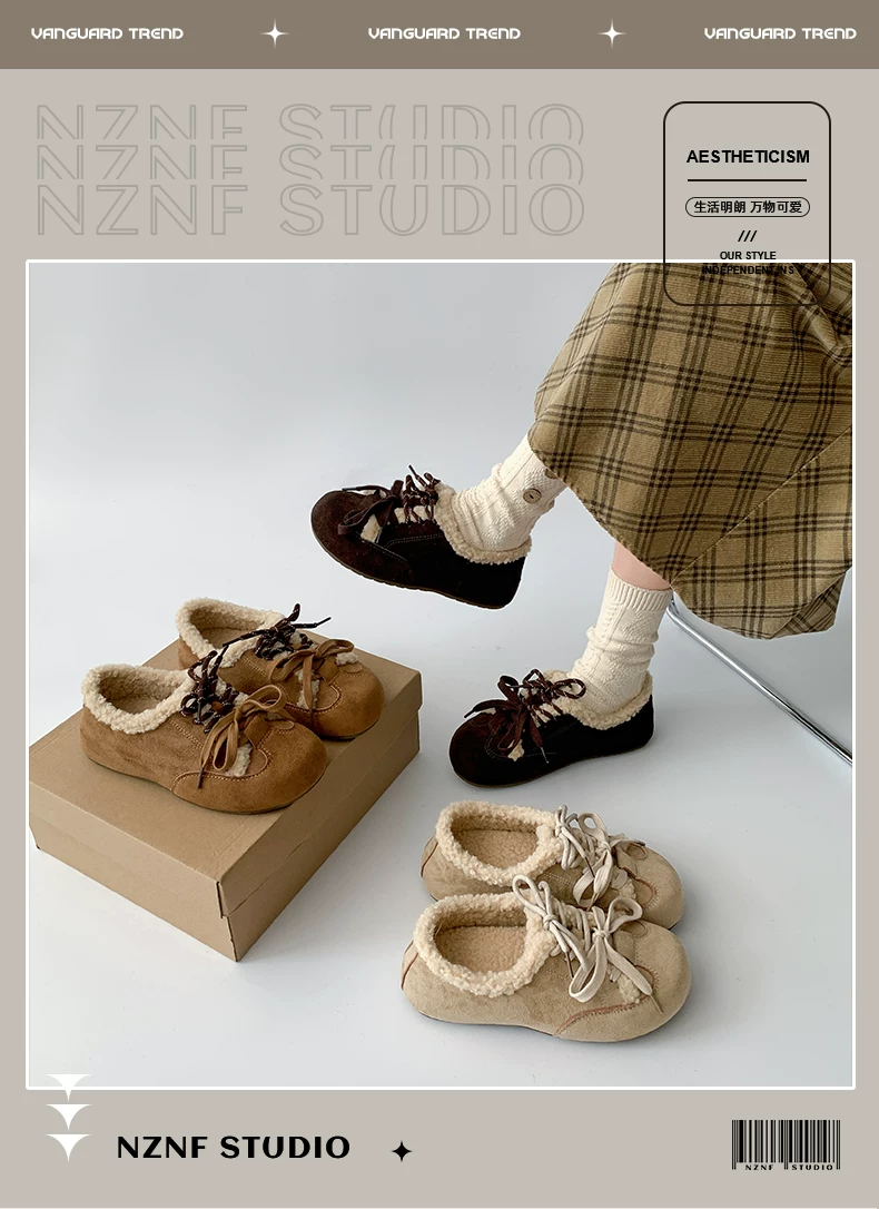 - Giày nữ Nanzai kiểu cổ điển đế dày lót lông cừu mùa đông 2025 mới, chống trơn, giữ ấm, kiểu Birkenstock