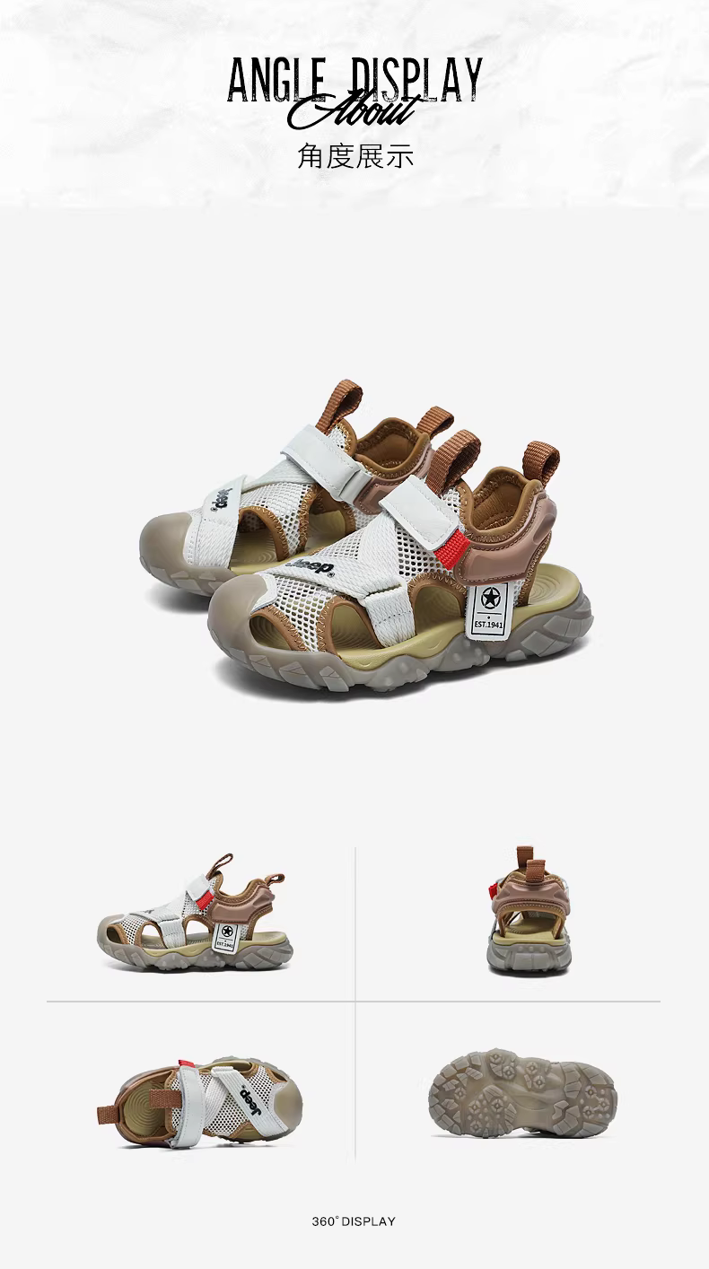 - Giày sandal bé trai Jeep, kiểu kín mũi, giày đi biển trẻ em, mẫu mới hè 2025, chất liệu lưới thoáng khí, đế mềm chống trơn trượt.