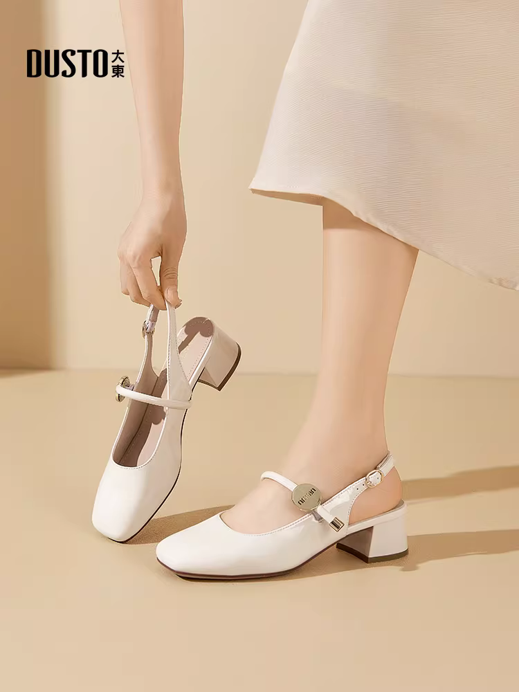- Giày sandal kiểu tiên nữ Dadong đi cùng váy cho nữ, kiểu mới mùa hè 2025, giày Mary Jane mũi kín, giày nữ đế thô mùa hè.