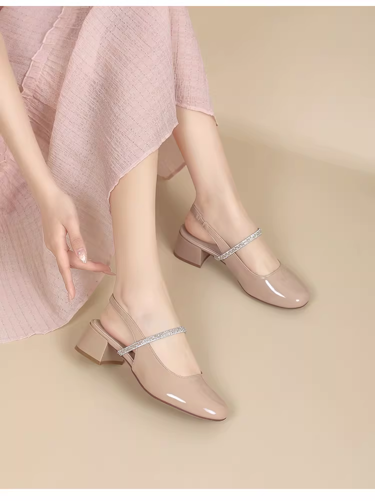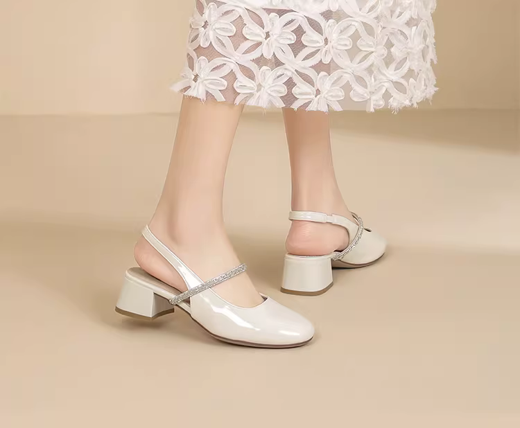 - Giày sandal nữ mũi kín, kiểu mới hè 2025, phối chân váy, gót dày, giày quai hậu, giày Mary Jane.