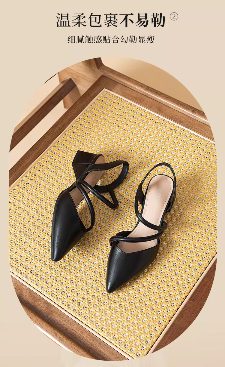 - Giày sandal nữ mũi nhọn, kiểu dáng mùa hè mới 2025, thích hợp phối với đầm, giày cao gót đế thô, sandal kiểu Pháp nhỏ nhắn.
