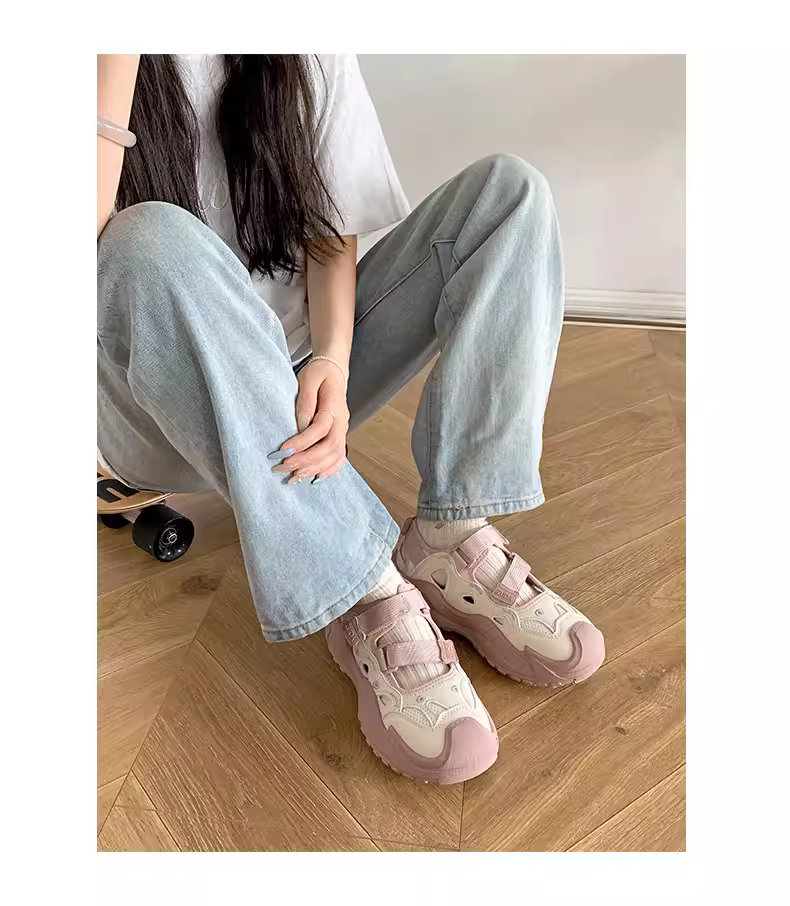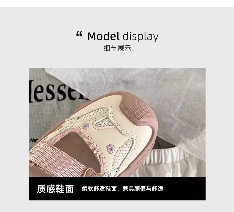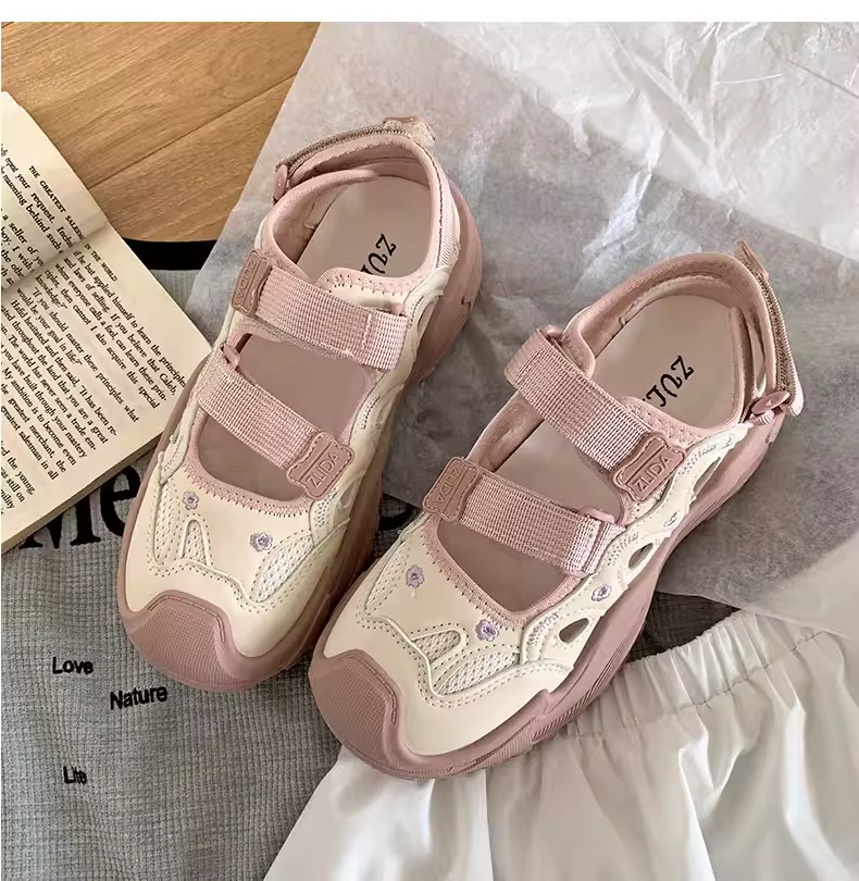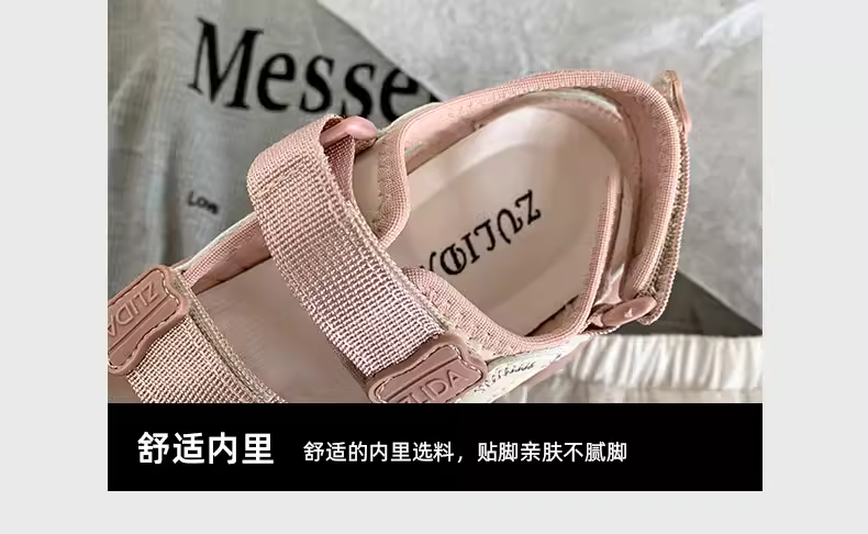 - Giày sandal thể thao đế dày đế bằng màu trắng Nan Zai Nanbian dành cho nữ, giày bố mùa hè mới 2025.
